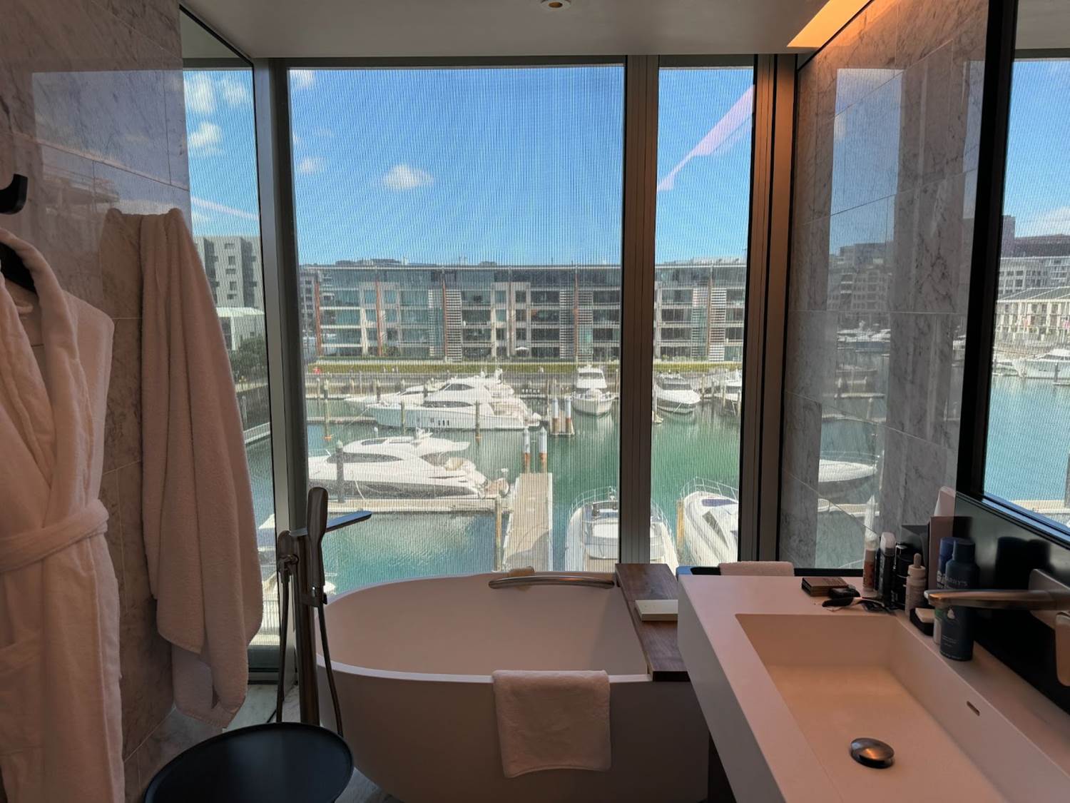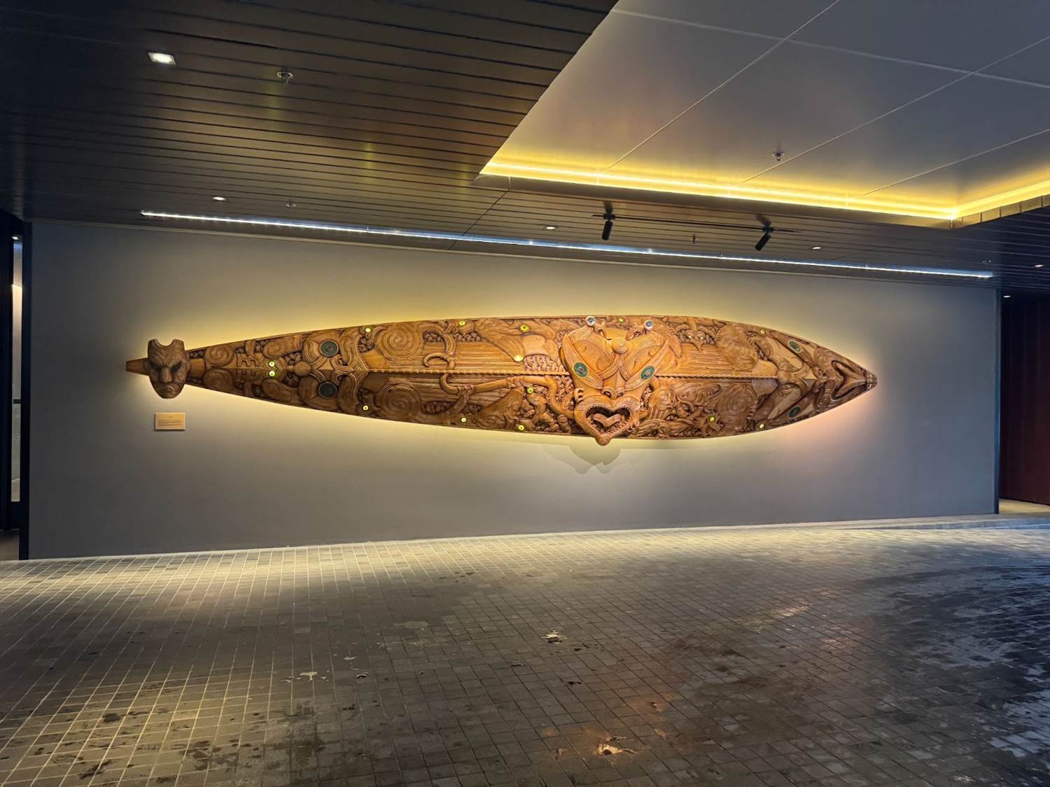 Each day has a theme, and today’s was “Kia Ora," a traditional greeting of the Māori, which you see on signage all over Auckland, including at the airport. Translated into English, the phrase greeting means "have life" or "be healthy," well wishes for a safe adventure. This theme extends to the first resort of the trip, Park Hyatt Auckland, which is a very contemporary resort, but heavily inspired by Māori culture, starting with a wood carving outside the main entrance.