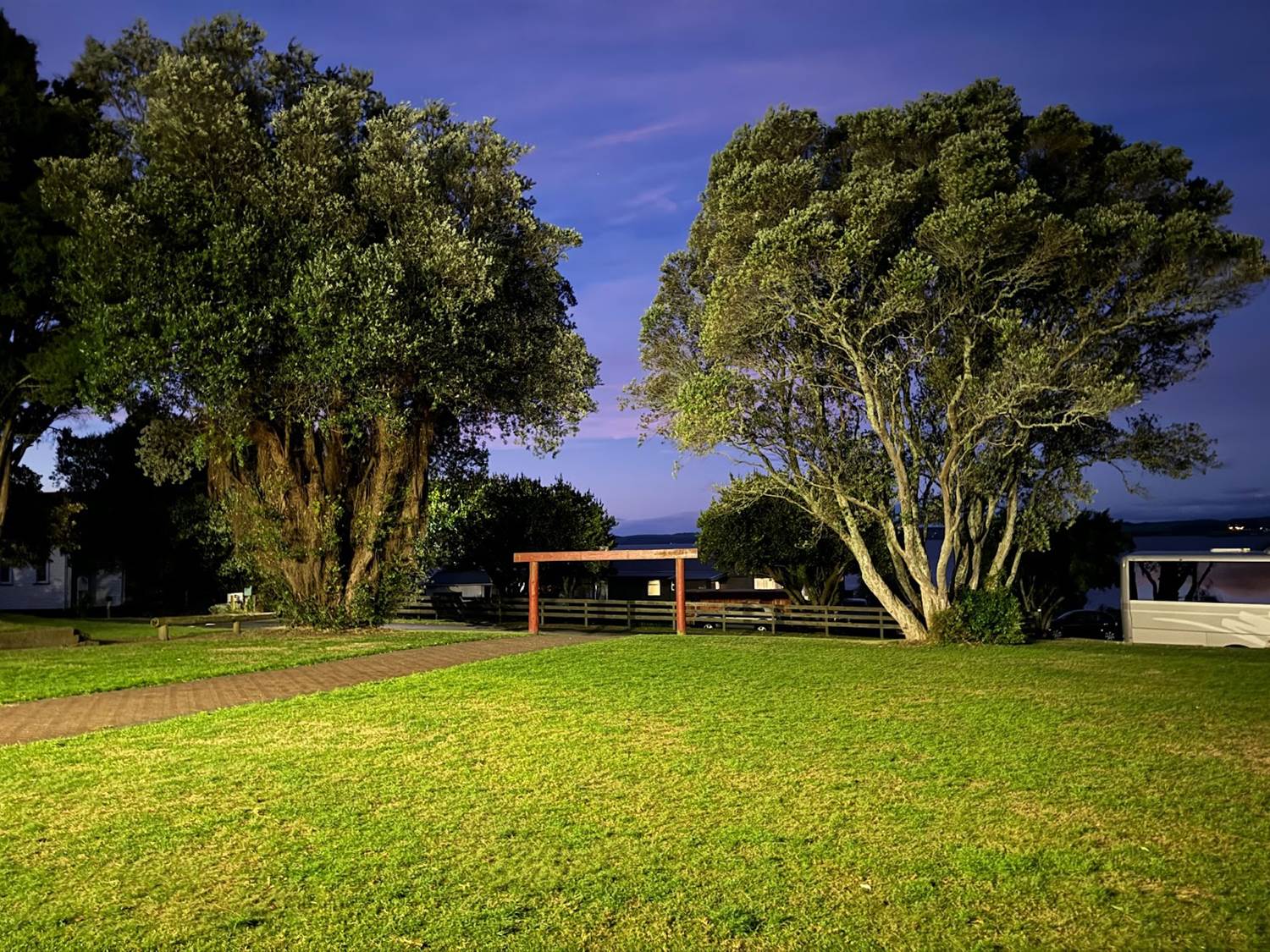 Prior to our arrival, a bonfire was used to heat hot stones in the ground, a preparation technique called Hāngī. A variety of foods, including chicken, lamb, fish, sweet corn, and potatoes, were placed in foil pans over the rocks and covered with protective layers of cabbage and cloth, with dirt covering those to lock in the heat and allow dinner to cook. We got to witness our meal being pulled out of the earth, following it to the wharekai for a fabulous feast.