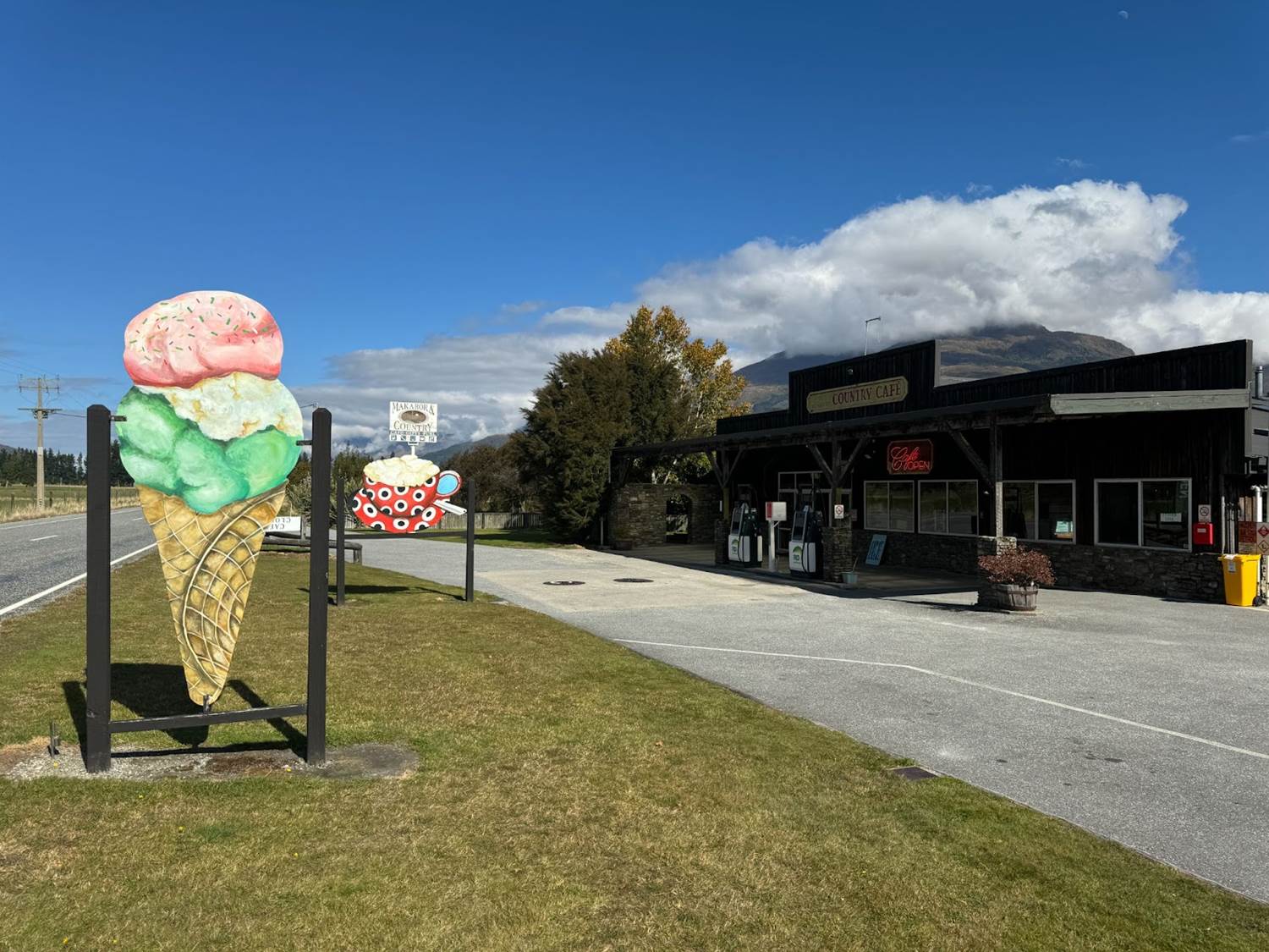Our lunch stop was at the Makarora Country Cafe, which is sort of like a Cracker Barrel but with cafeteria-style ordering. The menu includes meat and vegetable pies, fish and chips, sandwiches, salads, and lots of dessert items, including ice cream. The interior is decorated with turn-of-the-century relics and license plates from all over the world.