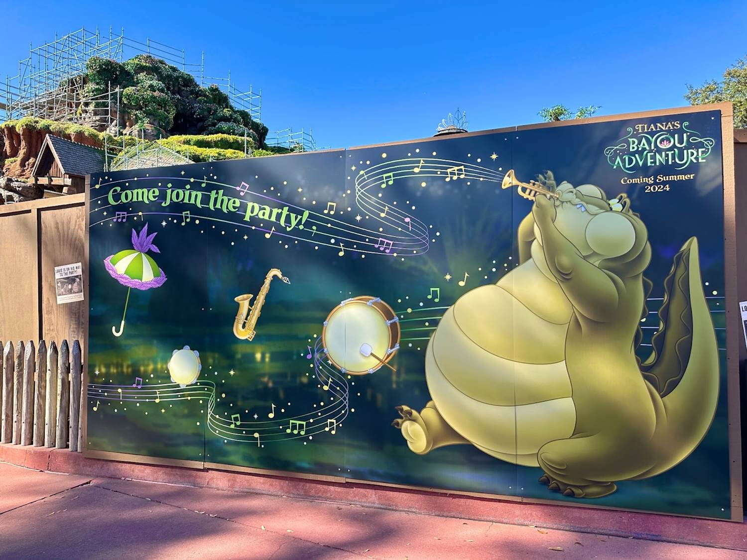 Photos: Updated Construction Walls Herald a Summer 2024 Opening for Tiana’s Bayou Adventure at the Magic Kingdom
