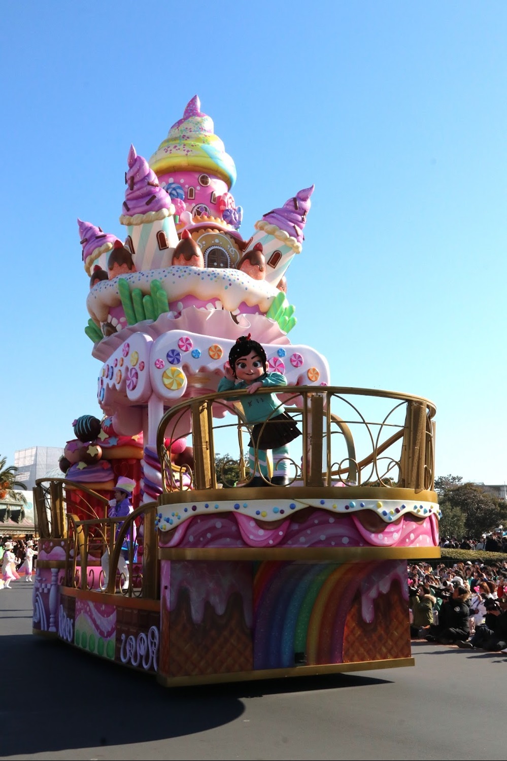 As with most events at Tokyo Disneyland, we get an all-new parade, “It’s a Sweetsful Time!" which brings Vanellope’s imagination to life with cute, colorful, and candy-covered floats. The parade kicks off with Vanellope aboard a candy castle.