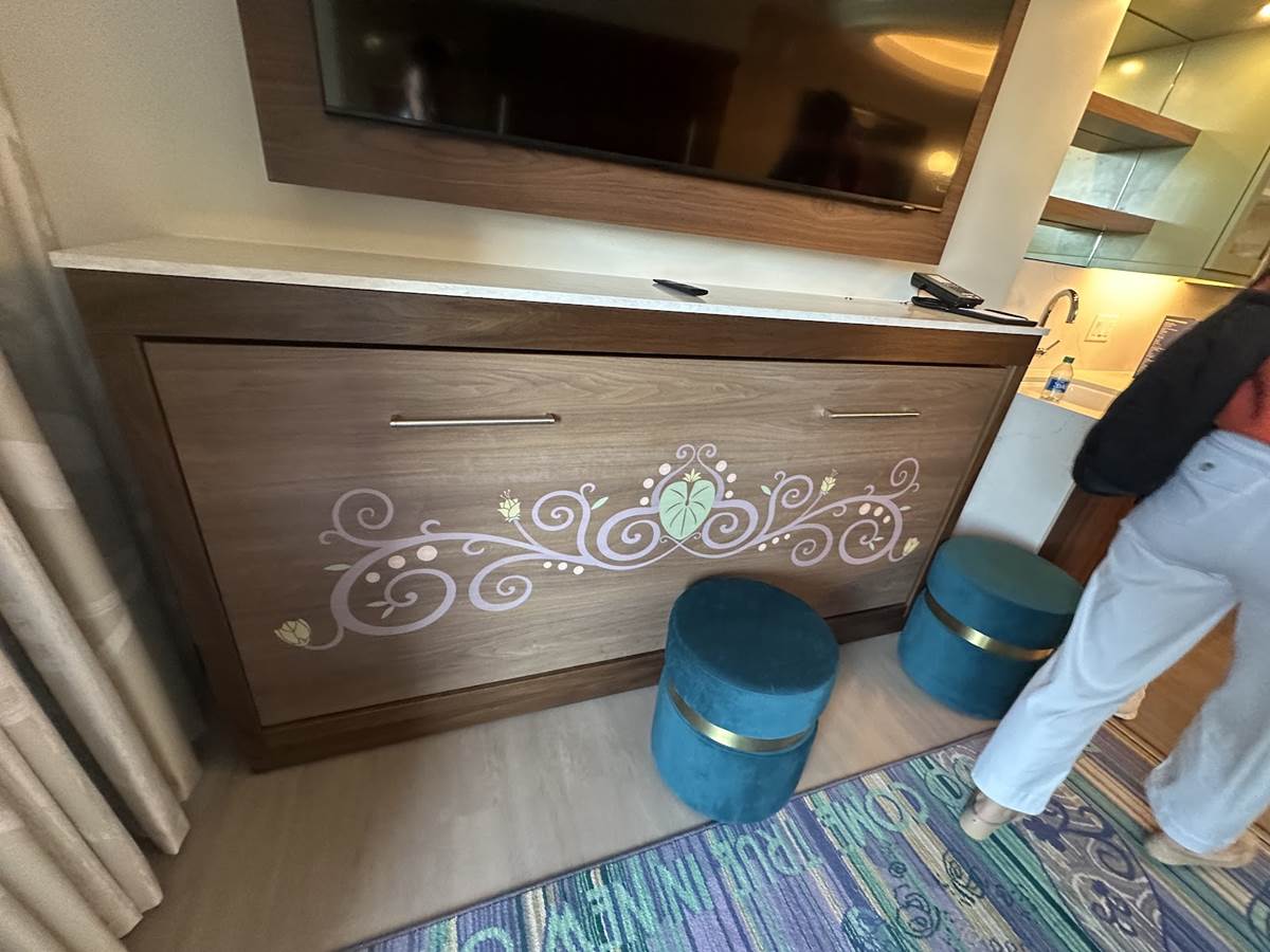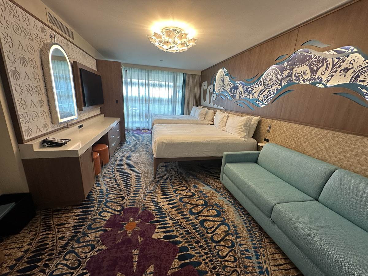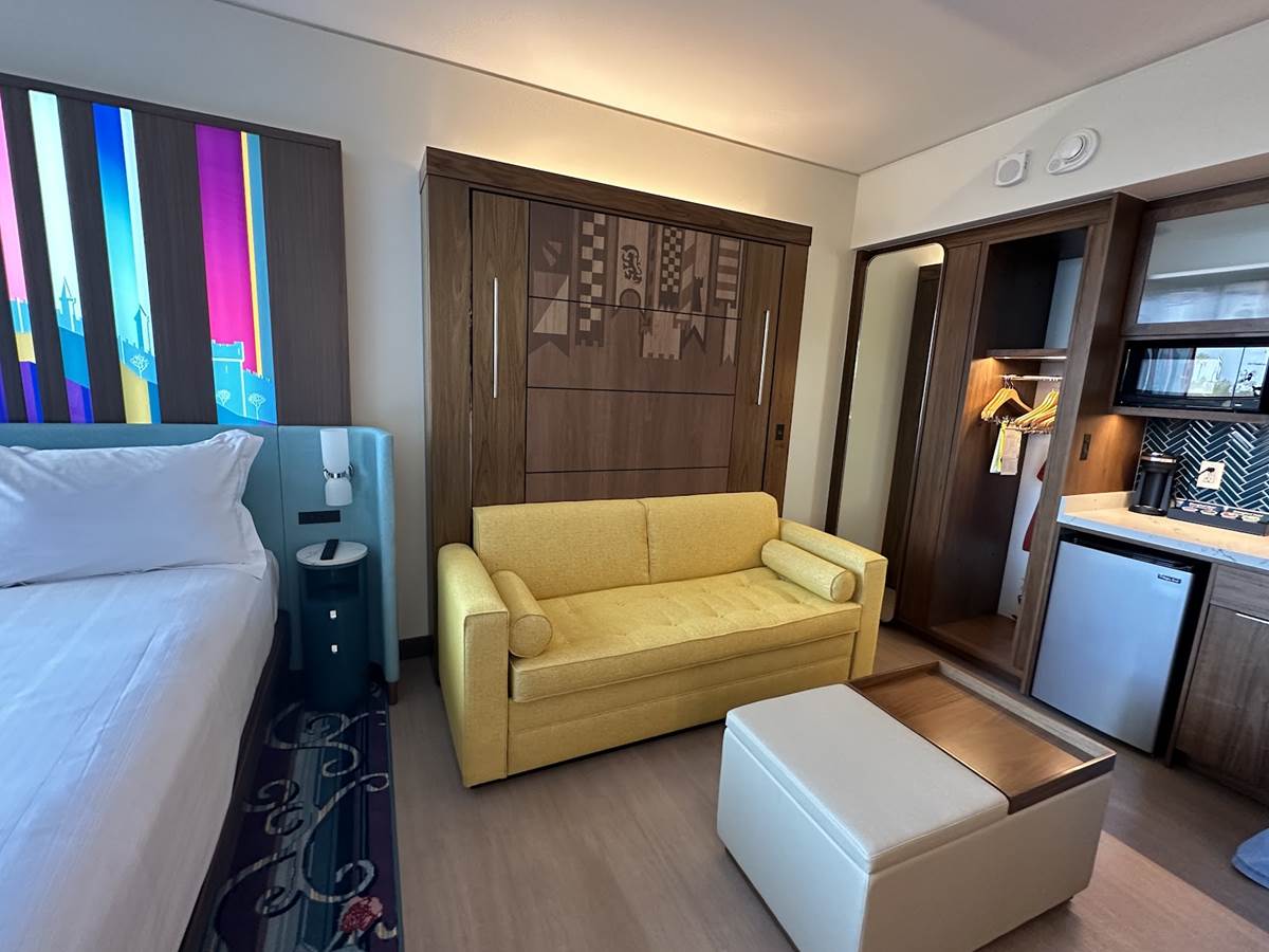 Perfect for two guests, the newly imagined duo studios are inspired by The Jungle Book featuring a split bathroom with themed tile accents and a queen-size bed that conveniently tucks into the wall to reveal a sofa when not in use. With enough space for up to four guests, the deluxe studios celebrate the timeless tales of Sleeping Beauty or The Princess and the Frog and feature a kitchenette, split bathroom and two queen-size beds to sleep up to four guests.