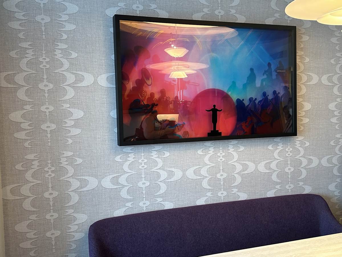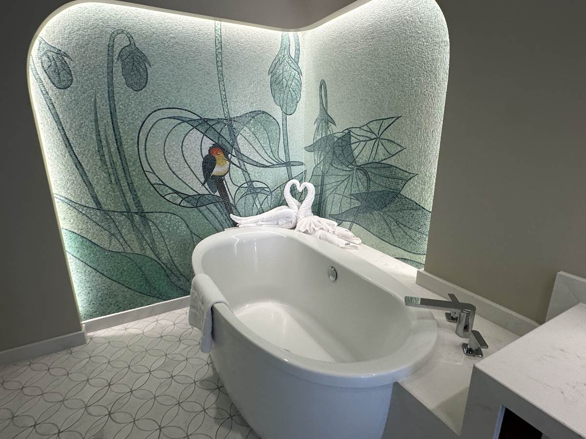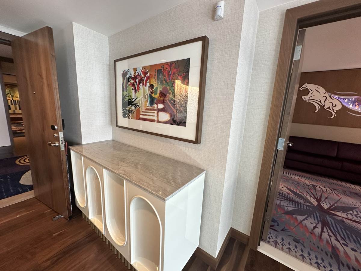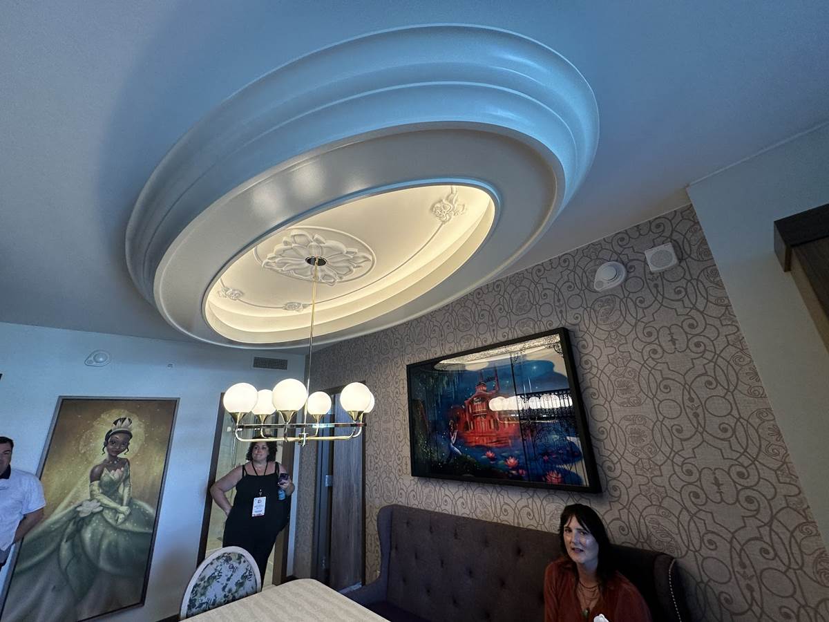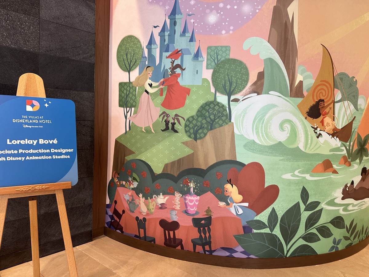When entering the lobby, members and guests are greeted by a mural created exclusively for this property by beloved Disney Animation artist Lorelay Bové. Bové is known for her visual development work on Walt Disney Animation Studios films such as The Princess and the Frog and Encanto.