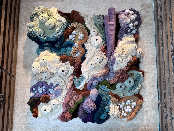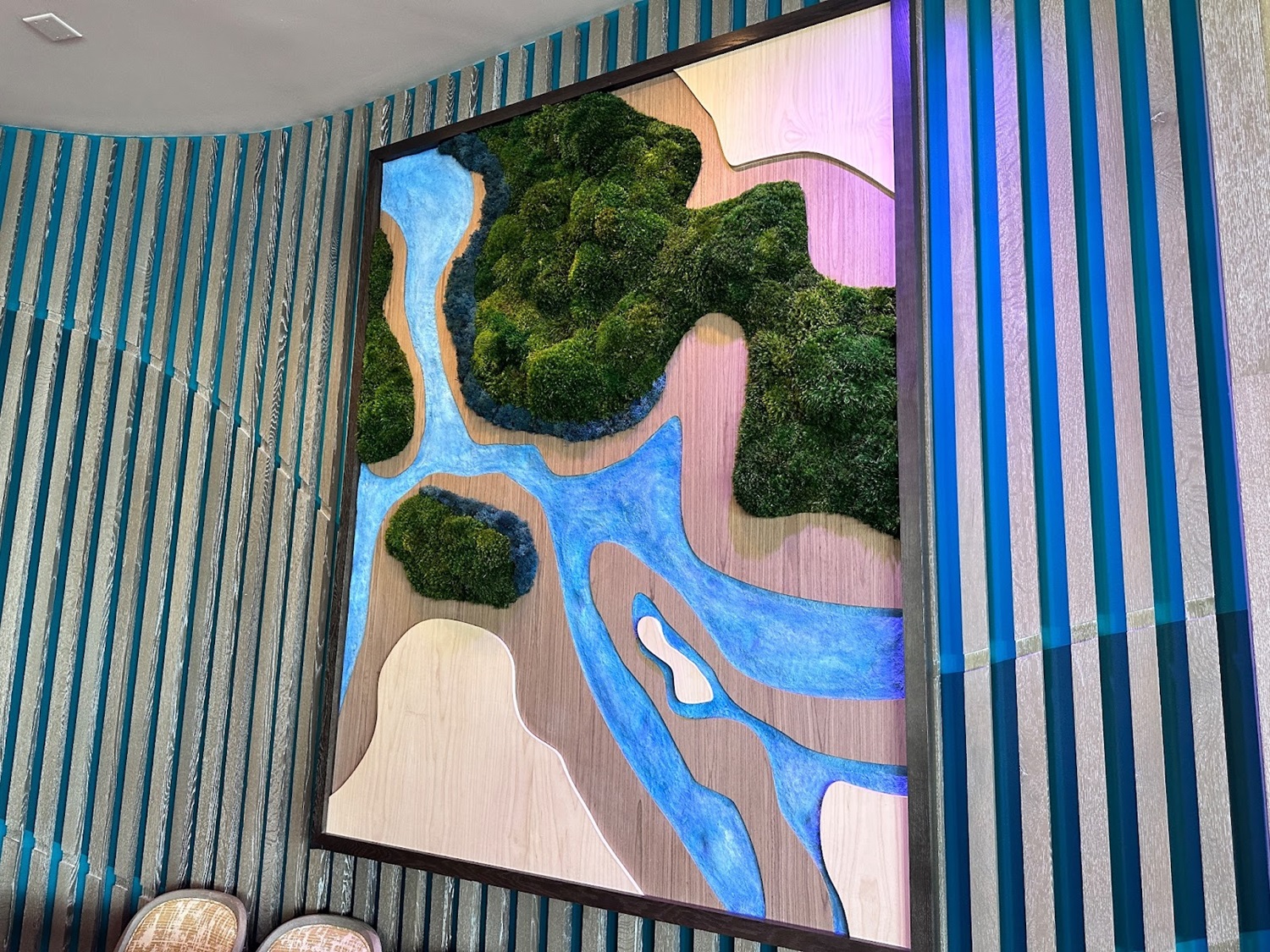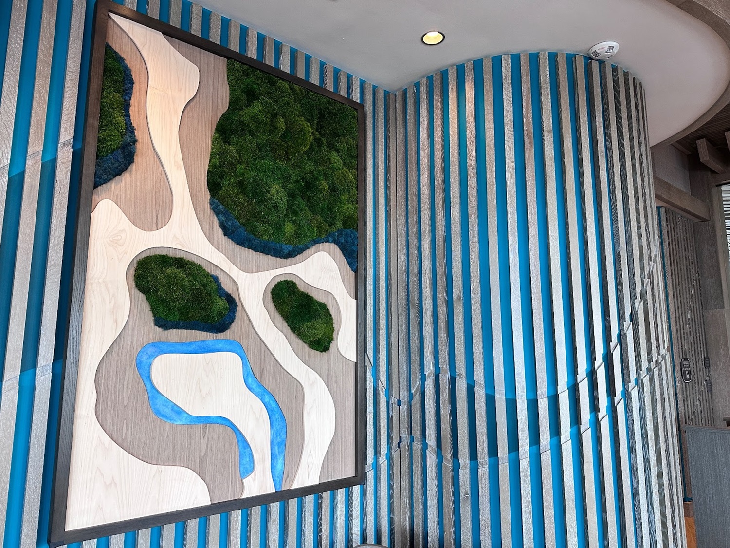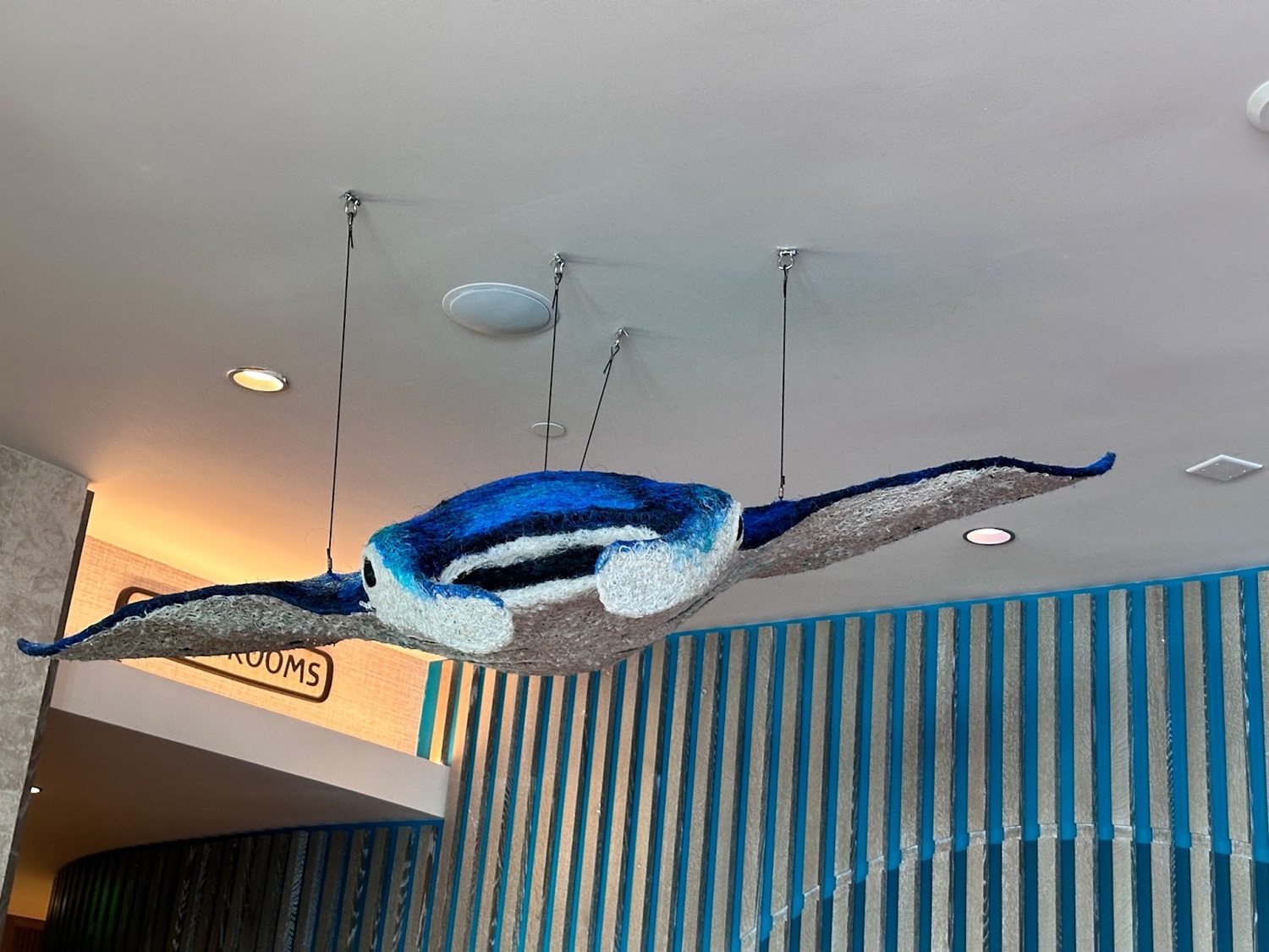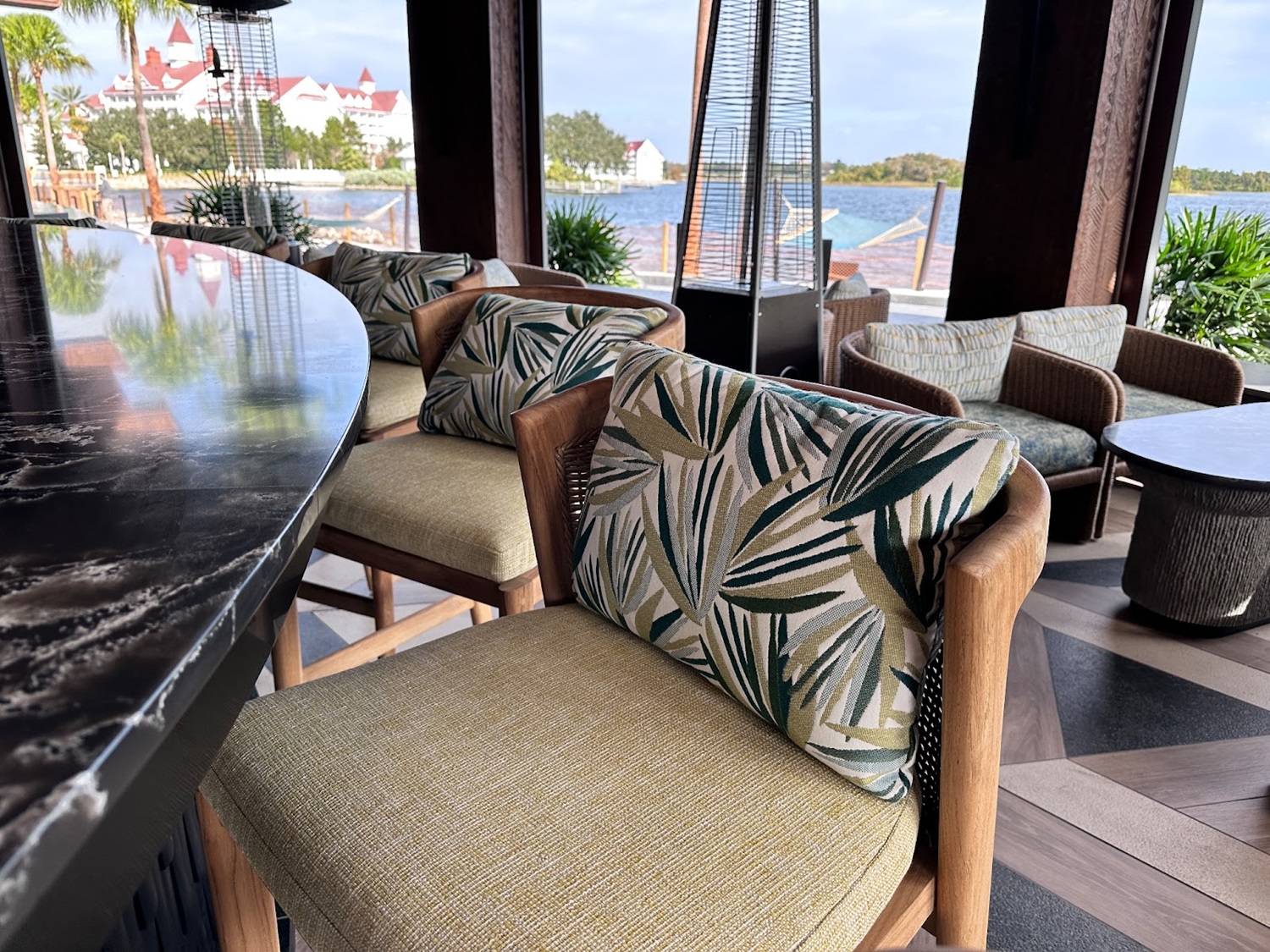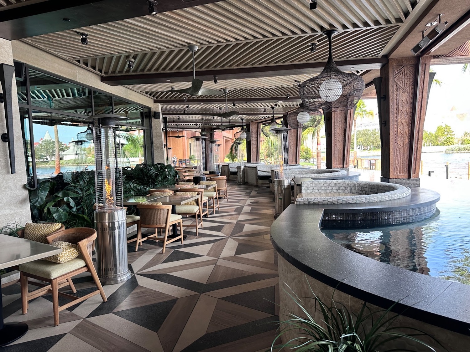 As you take in the stunning views of Seven Seas Lagoon, you'll be surrounded by stunning Polynesian-themed artwork, some made from recycled materials and fishing nets.