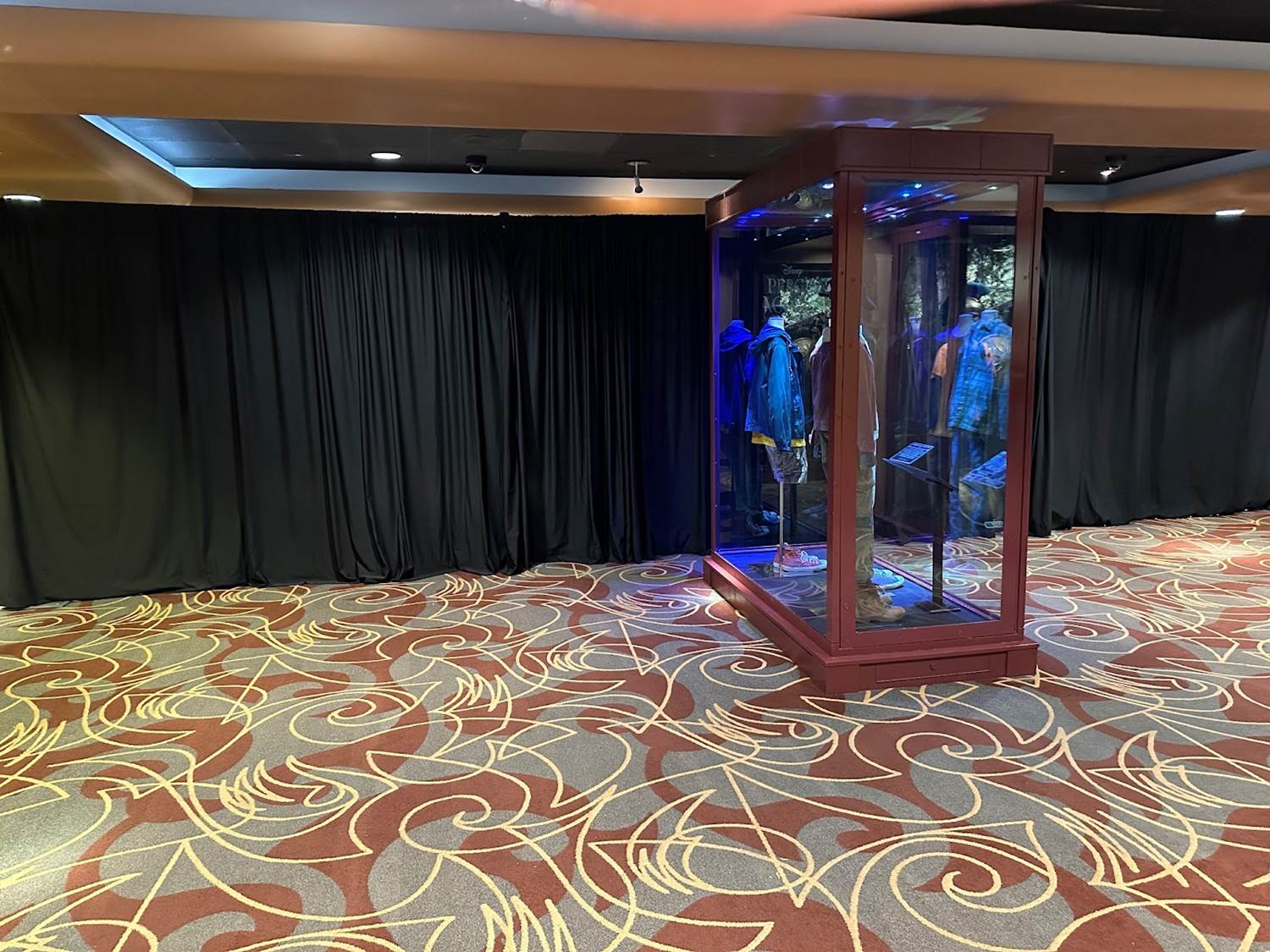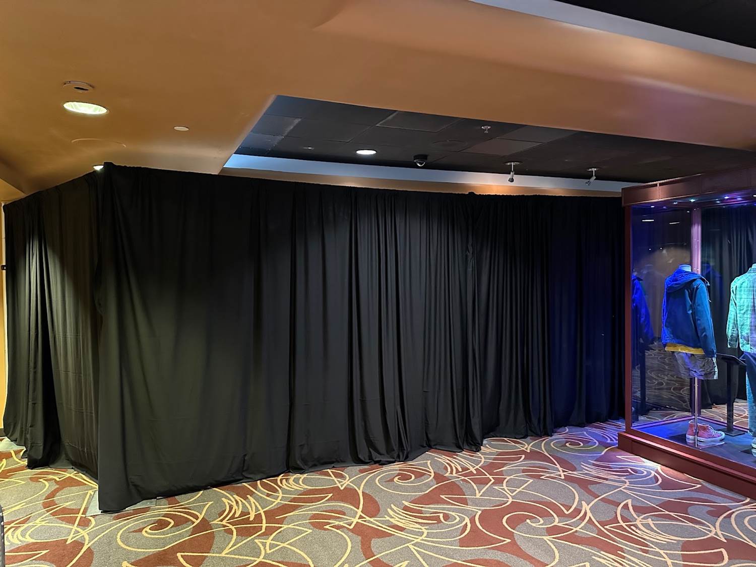 - The entrance to the theater is blocked off by a black drape, and guests must turn around to exit.