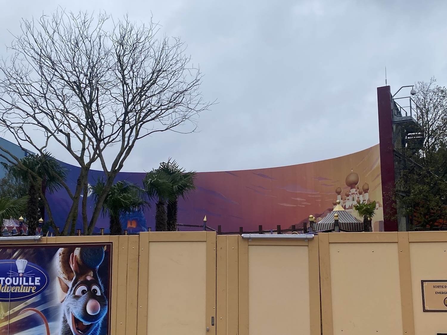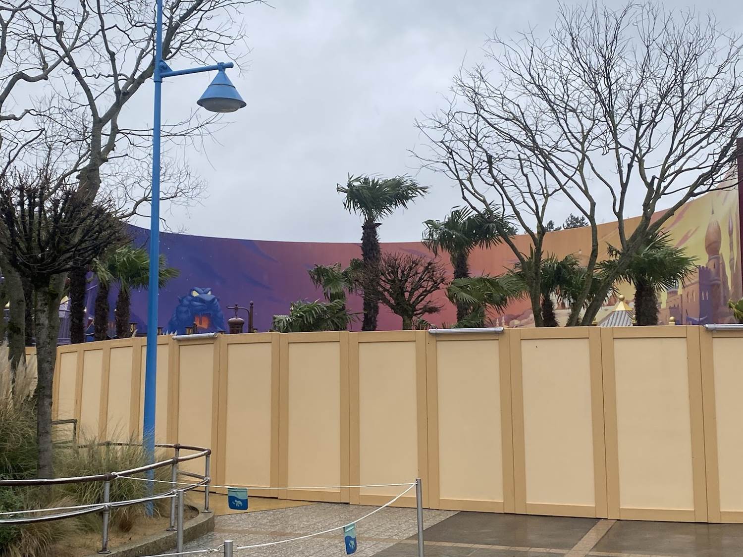 Flying Carpets over Agrabah is receiving a major, top-to-bottom refurbishment as walls cover the attraction.
