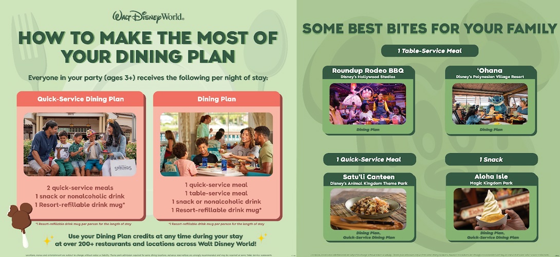 Free Dining Offer Returning for Select Walt Disney World Vacation Packages Booked in Early 2025