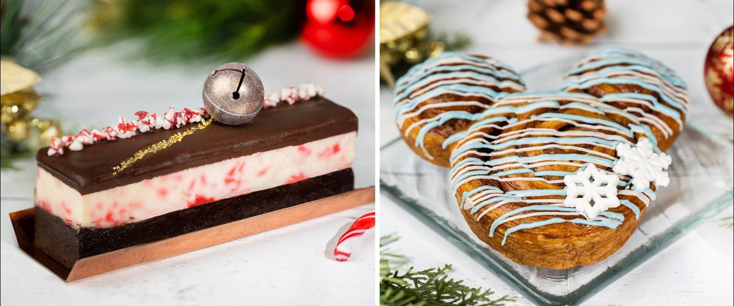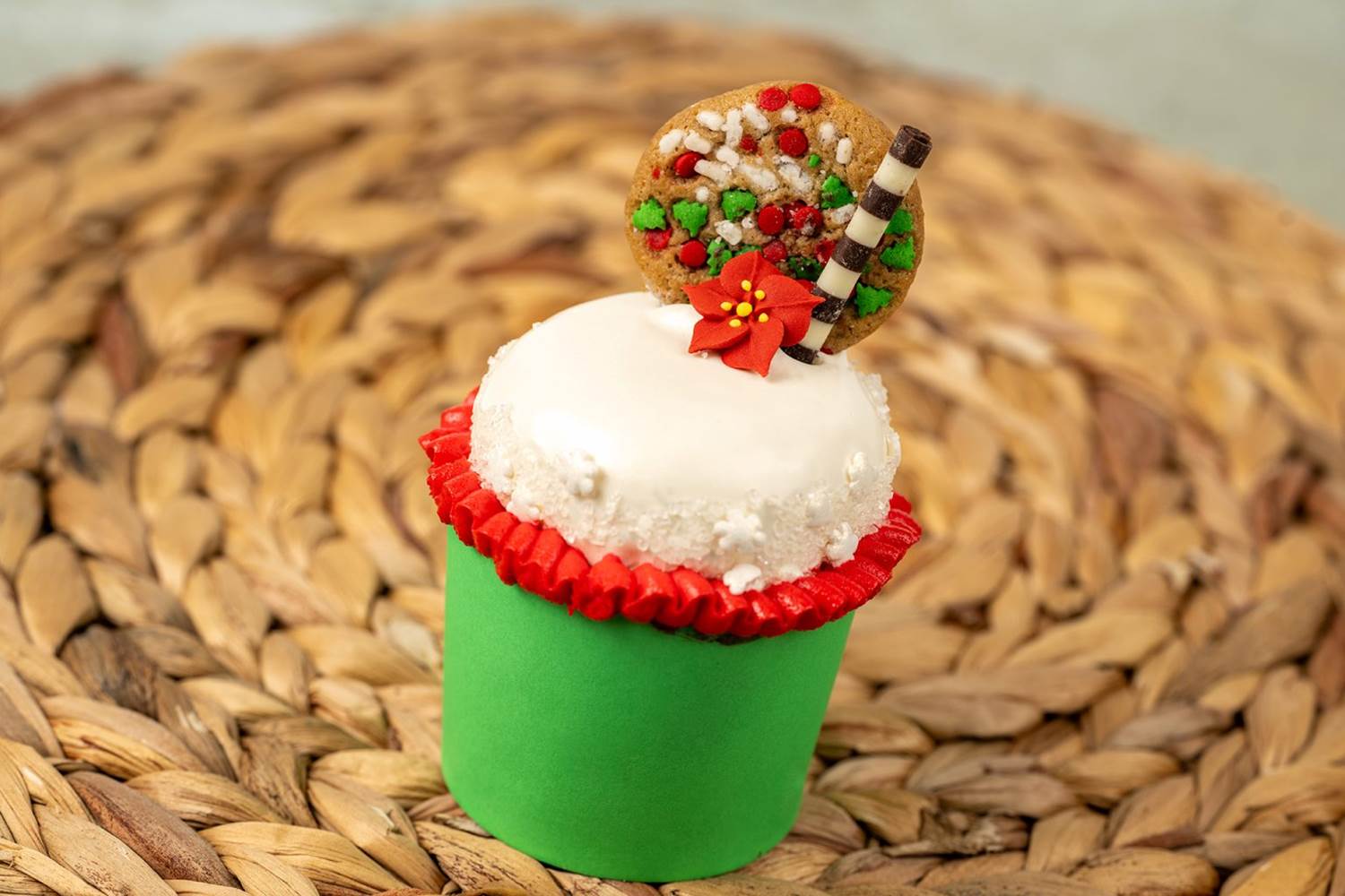 - Holiday Mickey Cupcake: Vanilla cupcake, white chocolate mousse, colored buttercream, holiday sprinkles, and white chocolate candy cane (New)