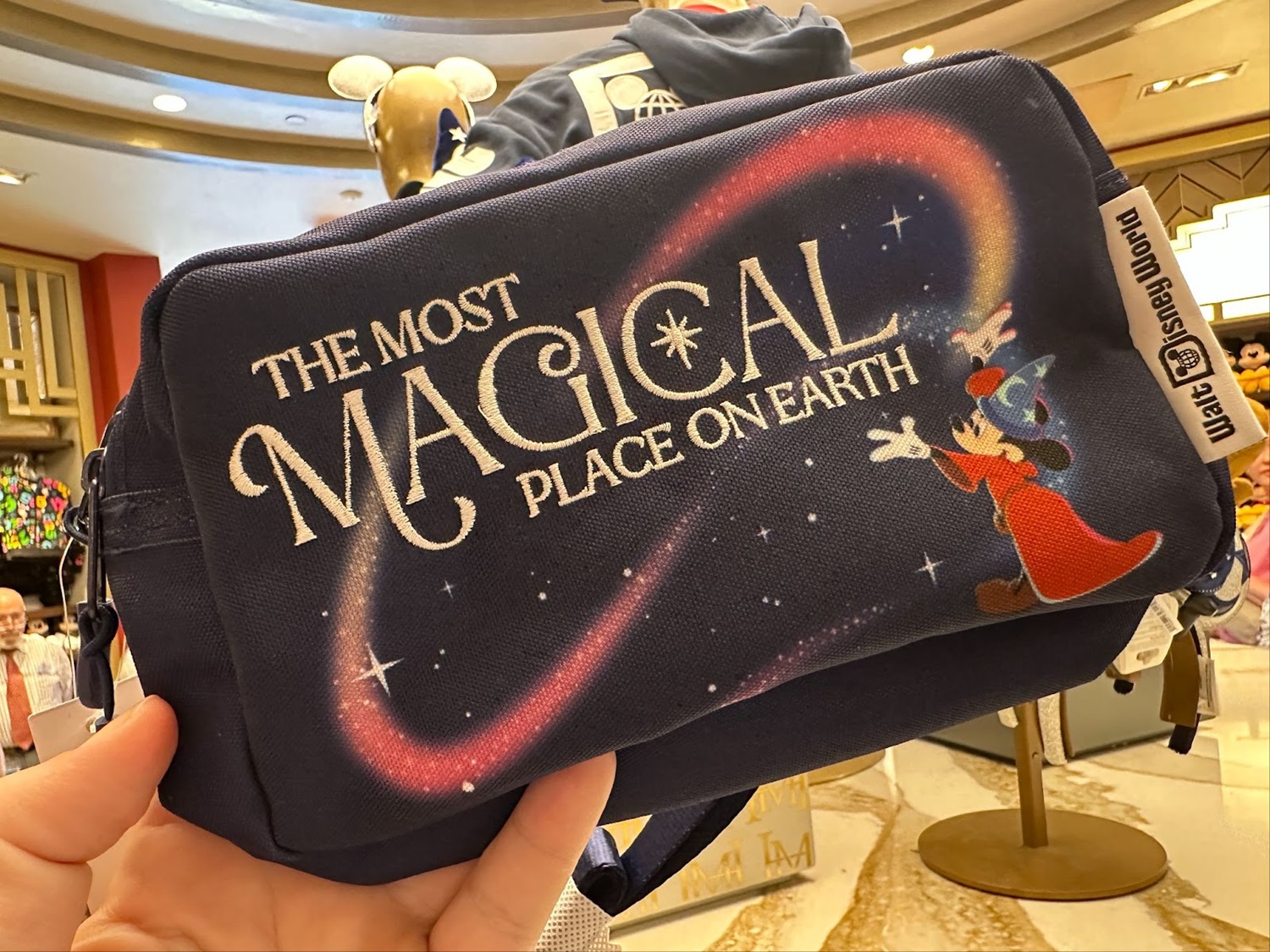 This perfectly park-sized crossbody features Sorcerer Mickey using his magic printed on the front, with “The Most Magical Place on Earth" embroidered over it.