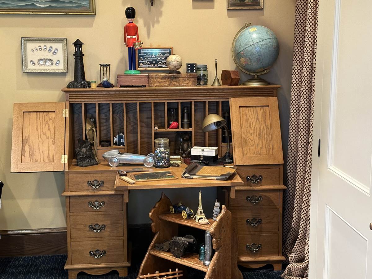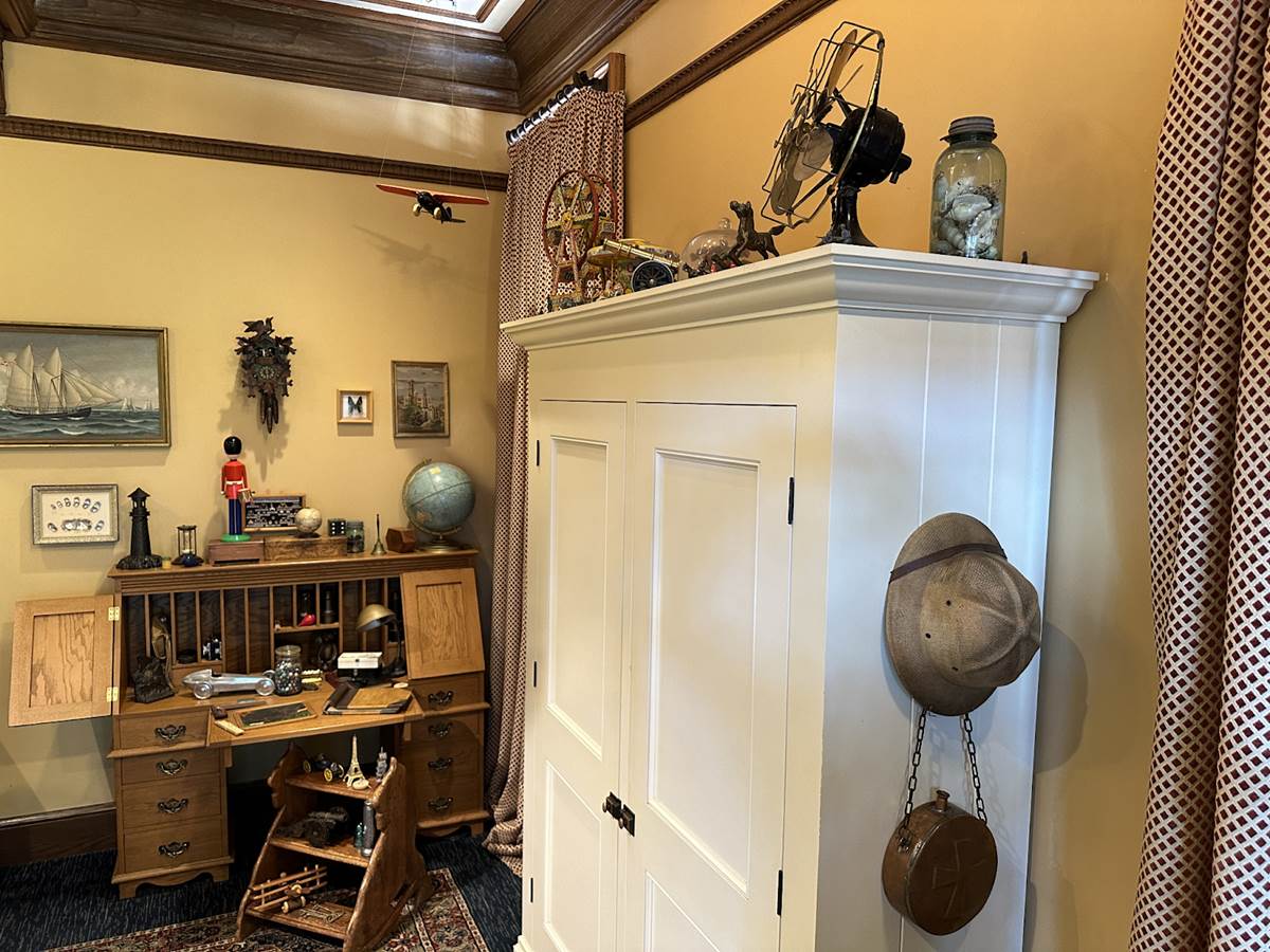 - The Christopher Robin’s bedroom meet and greet features his wardrobe, bed and desk.