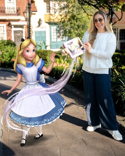 - Alice and art inspired by Mary Blair: in the United Kingdom pavilion at EPCOT and by Mad Tea Party at Magic Kingdom