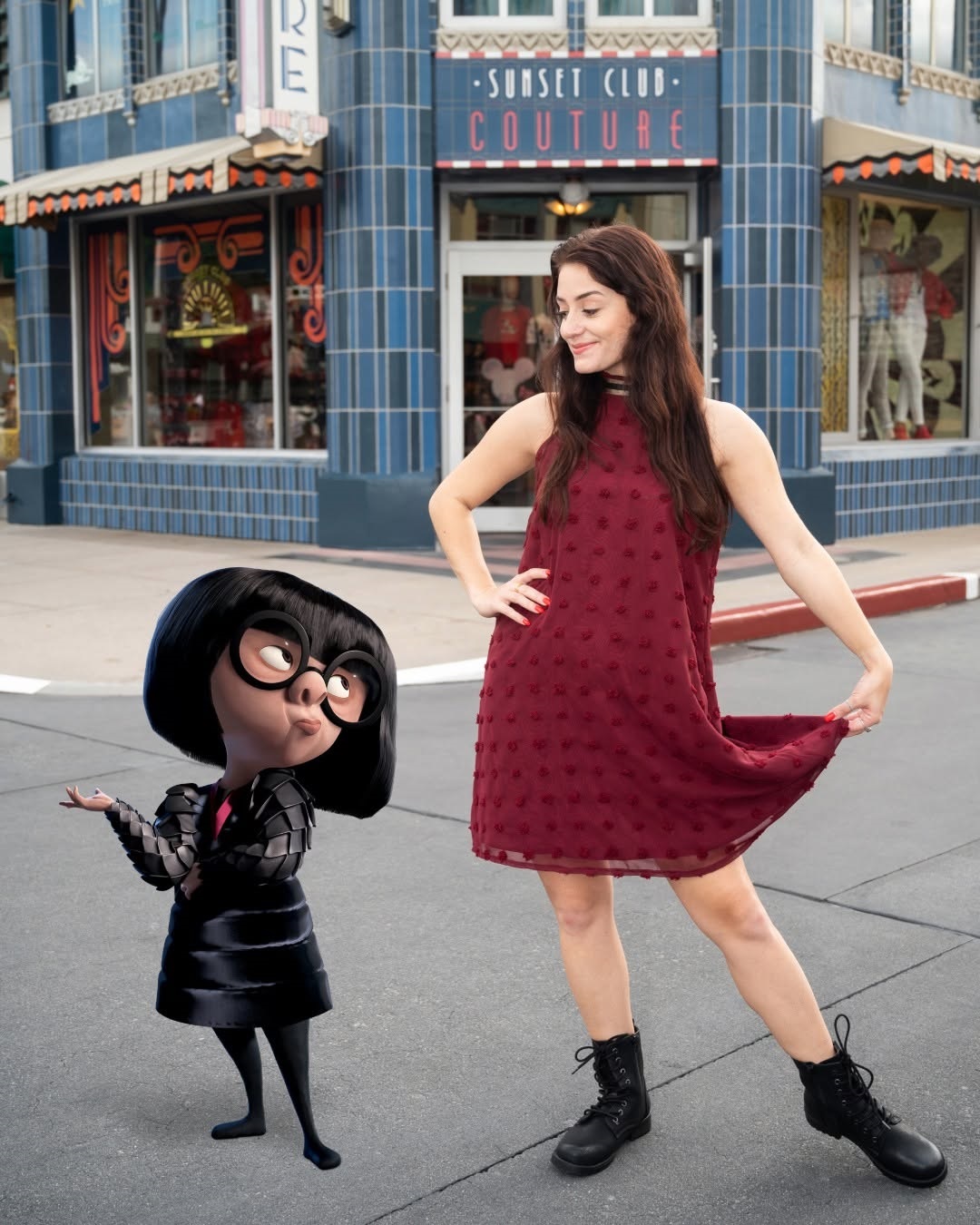 - Edna Mode: near the Hollywood Studios arch, in Pixar Plaza, and by Reel Vogue on Sunset Boulevard at Disney's Hollywood Studios