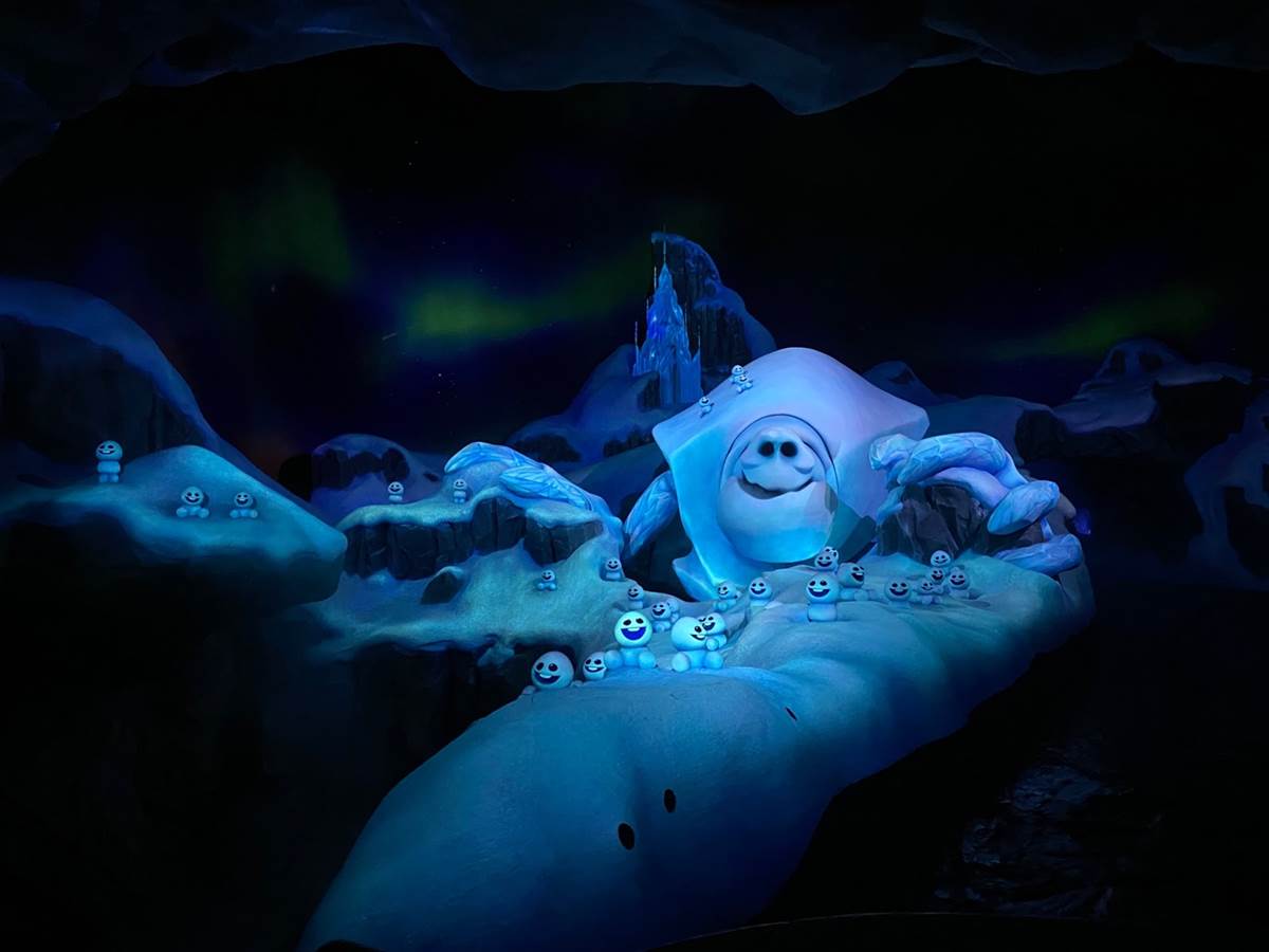 Frozen Ever After, while very similar to its EPCOT counterpart, still has some significant differences. Guests enter through the clock tower first seen in the Frozen Fever short, into a queue that is very similar to the one at EPCOT, but just more fleshed out. The attraction itself features all of the same show scenes, however some are spread further apart, such as the opening scene with Olaf and Sven, going into the next scene with the trolls. As Imagineers didn’t have to work around a pre-existing layout, they had more freedom to play around.