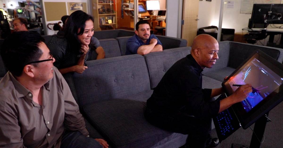And, speaking of computers - nowadays, most animation work isn’t anywhere as kinetically appealing as watching an artist take a pencil to paper and draw each individual frame. Hand drawn animation at Disney, bluntly, is all but gone. There are only a few hand-drawn artists under their employ. Most animators at Walt Disney Animation Studios now use 3D models on a computer, and those few who do hand-drawn do it digitally. So, if the public would look over their shoulder they’d see someone sitting (or standing) at a desk, clicking around and would look no different than staring over a bank of cubicles at an office. Plus, with these artists staring directly at screens for most of their day, many of them opt to work in the dark, with their devices set to dark mode. So not only that, we’d see a lot of bad lighting as the guests look down into them from above.