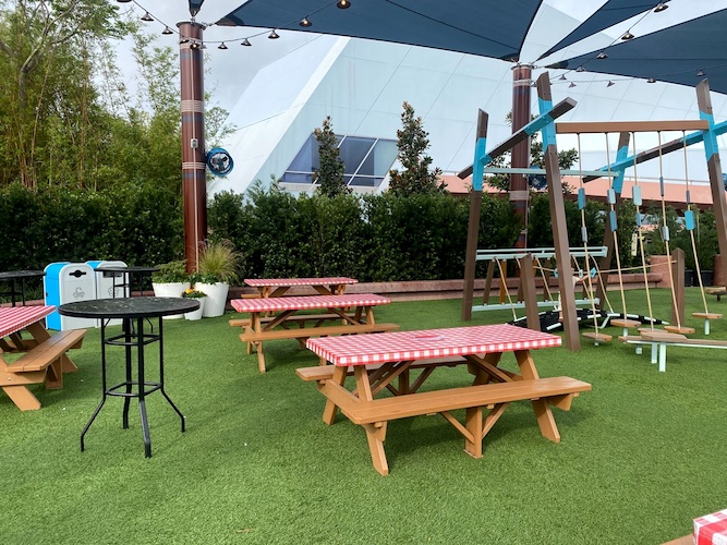 - The area also hosts picnic tables and standing tables, allowing families to rest and relax or enjoy some snacks from a few other Yacht & Beach Club-inspired offerings.