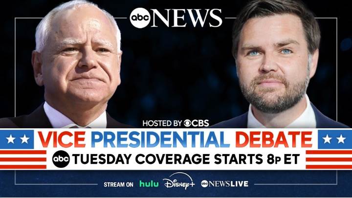 - ABC News has announced special coverage of the 2024 election and the vice presidential candidates with special programming that will be featured on ABC, ABC News Live, Disney+, and Hulu, YouTube, Roku, Amazon, Samsung TV, and other platforms starting on Tuesday, October 1st - beginning at 7:00 PM to 12:00 AM EDT.