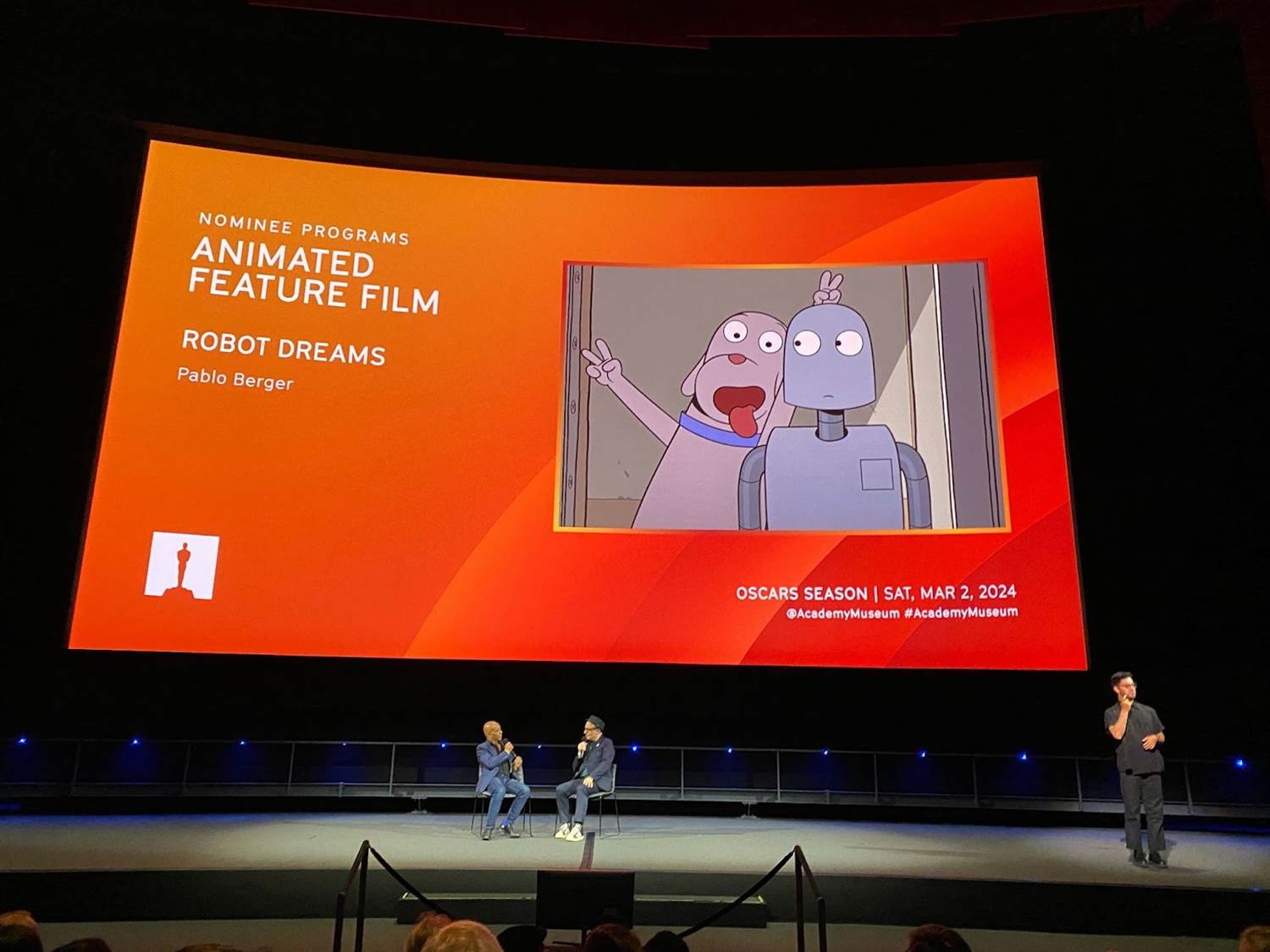 The penultimate film represented in this group of nominees was Robot Dreams by filmmaker Pablo Berger, who as a newcomer to animation said he felt “like a first-time director, [even though] this is my fourth film. I read the graphic novel twice, and it wasn’t until the second time that it brought me to tears. That was because I lost people along the way. I thought if I made it into a film it might affect people the same way. We wanted to make this love-letter to New York. I want people to travel in time to a New York that vanished. Every detail had to be right [for the 1980s]. The film doesn’t have any dialogue– my favorite period of film is silent cinema. You feel things. I think film should be more like a concert or a ballet. I wanted to make films that use beautiful composition and emotion."