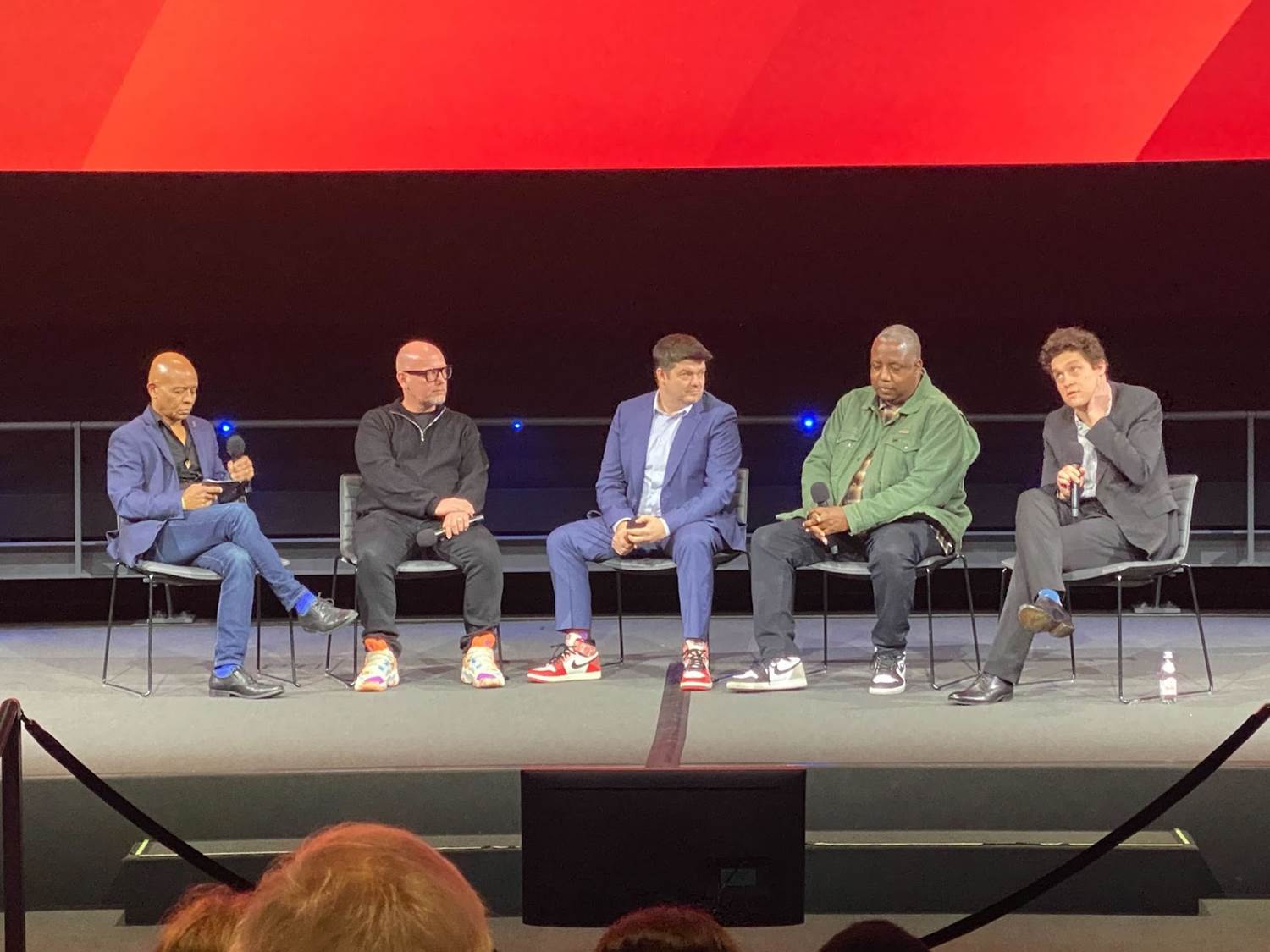 The final feature film to be discussed during the animation panel presentations on Saturday was Spider-Man: Across the Spider Verse from Sony Pictures Animation and Marvel Entertainment. Present for the talk were directors Kemp Powers and Justin K. Thompson, alongside producers Phil Lord and Chris Miller, who started off by saying, “The main thing was to be more ambitious [with this sequel]. You have to be aggressive. We knew making the first one was really hard, but also that we were just scratching the surface of what was possible." Then Thompson added, “I was always obsessed with telling stories. I invested heavily in the internal dialogue that characters were having. ‘What could the film say that the characters weren’t saying themselves?’"