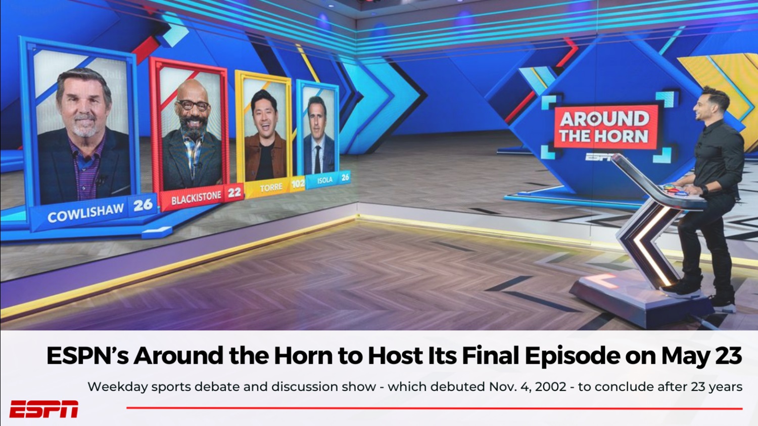 - Around the Horn, a staple of ESPN's weekday programming for more than two decades, is scheduled to broadcast its final episode on Friday, May 23, at 5 p.m. ET.