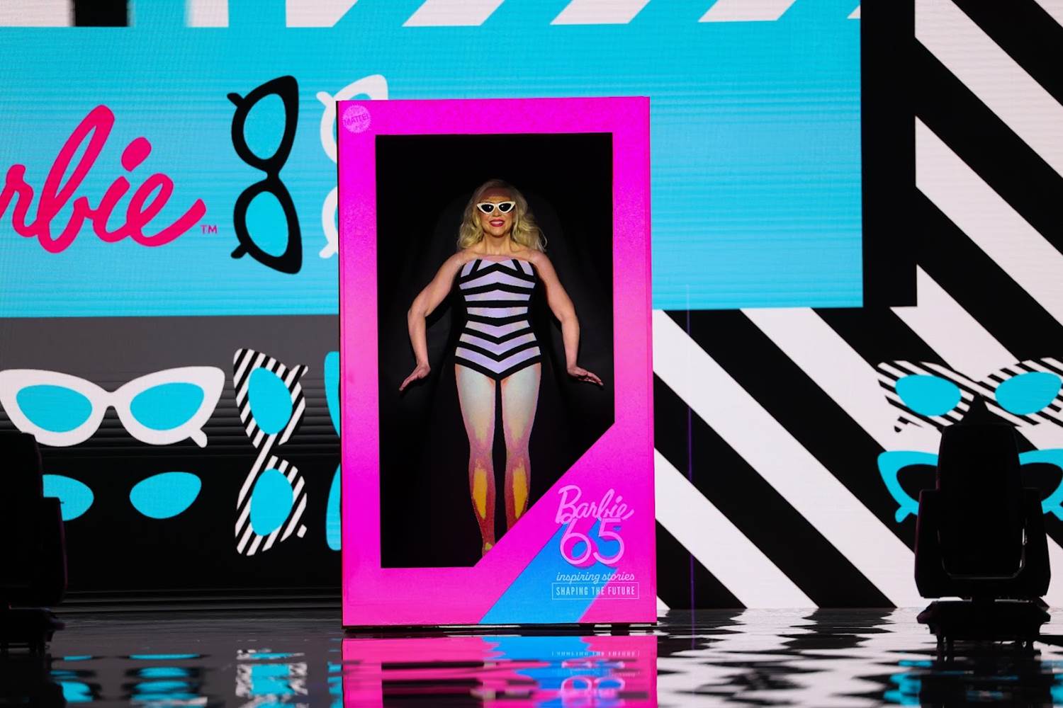 - Eckstein’s projection mapping dress inspired by 65 years of Barbie fashion was a show-stopper, followed up by the pair wearing outfits inspired by fan-favorite Mattel brands.