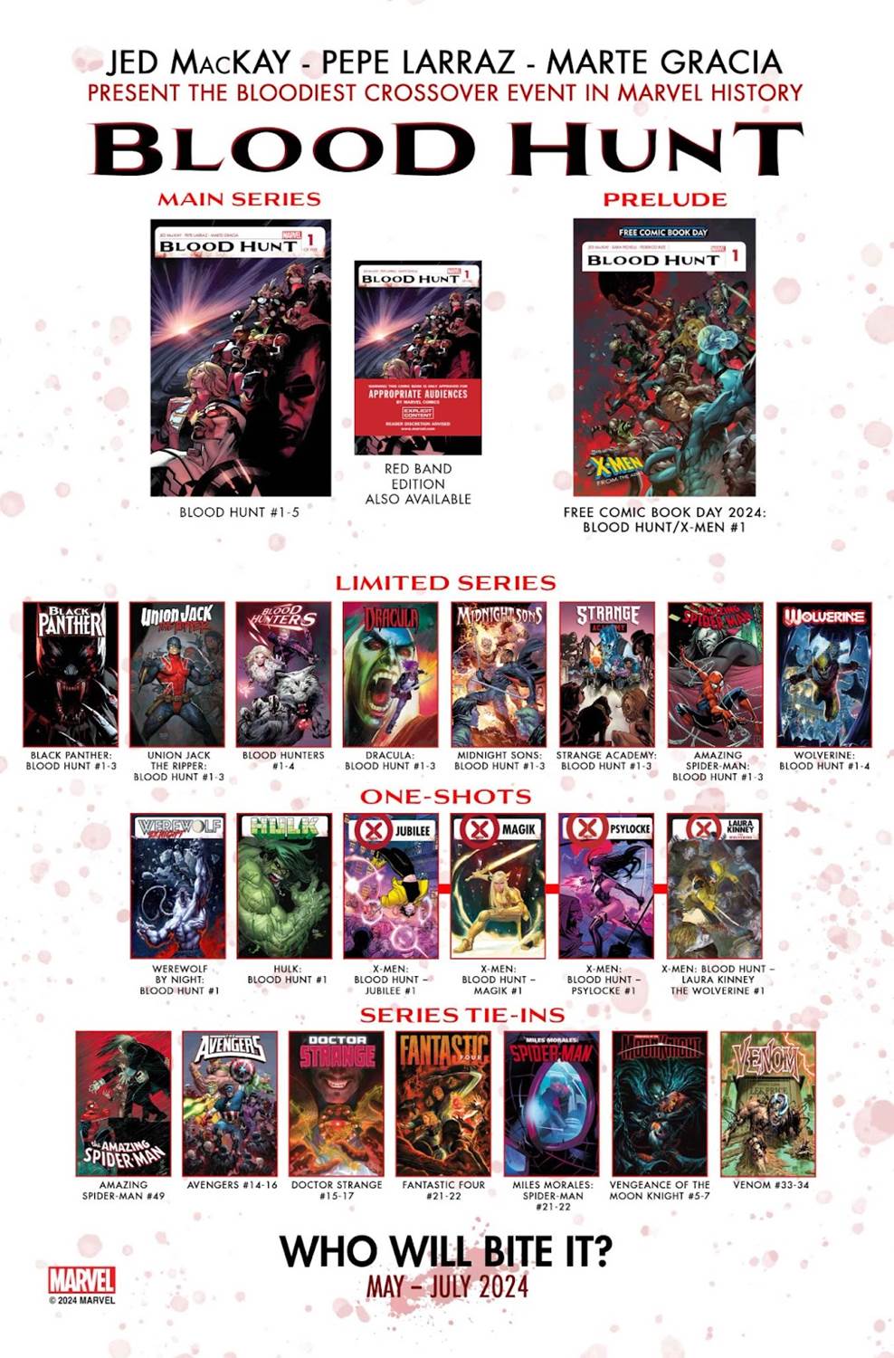 - Check out the event checklist below and make sure to preorder these "Blood Hunt" issues and more at your local comic shop this weekend.