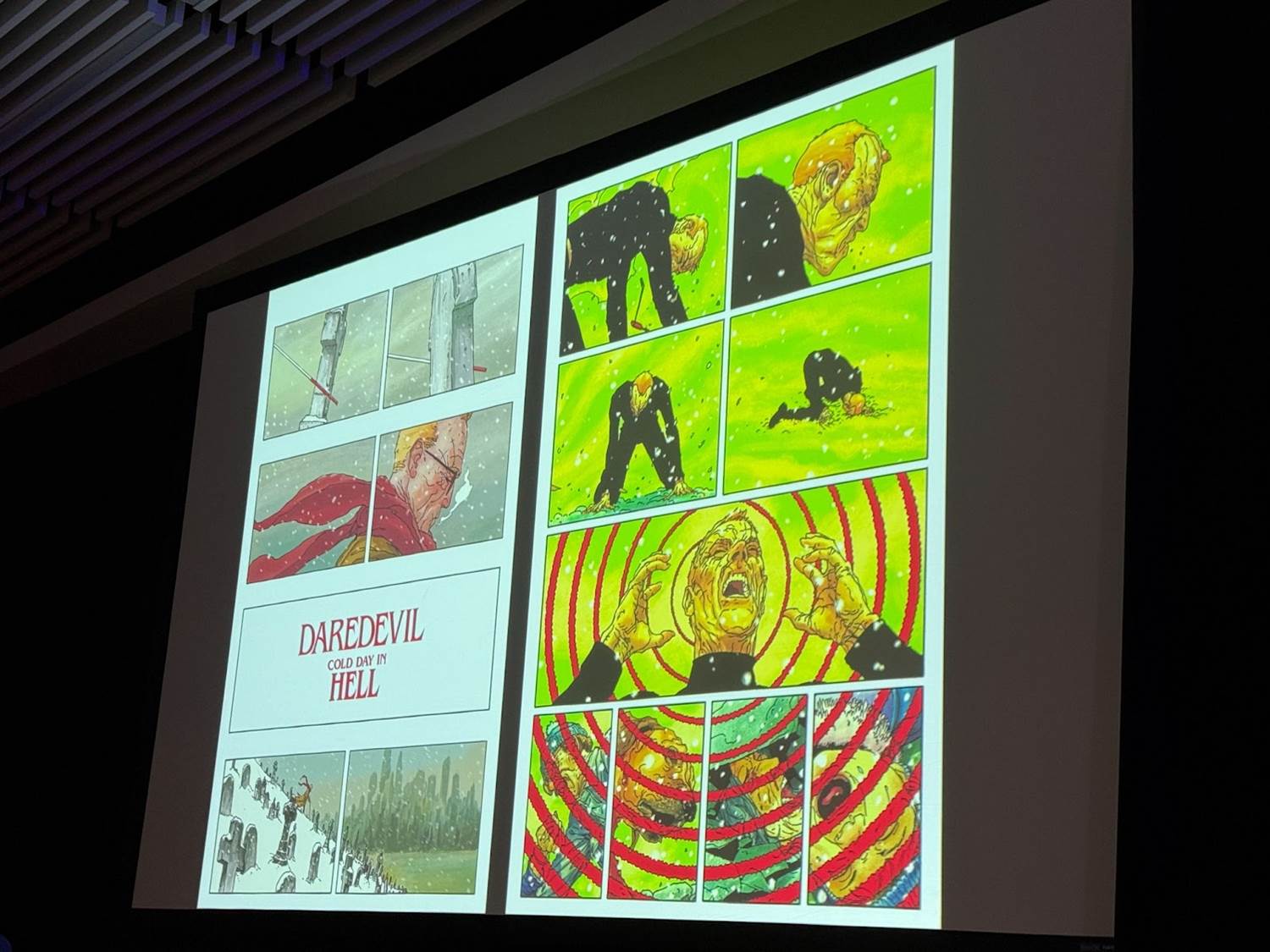 The panel began with the legendary Frank Miller, whose work on Daredevil in the 1980s transformed the character into a gritty, complex figure in the Marvel Universe. Miller shared stories from his early life as a comic book fan growing up in Vermont, recounting how he became fascinated by superheroes like Superman and later became inspired by comic book legends like Jack Kirby and Stan Lee. He also reflected on his iconic Daredevil runs, including Born Again, which he described as a deep character study where he "stripped Matt Murdock down to nothing" to explore what truly makes him a hero. Miller’s groundbreaking storytelling and art style have influenced generations of creators, many of whom continue to push the boundaries of the medium.
