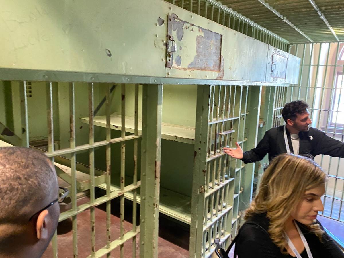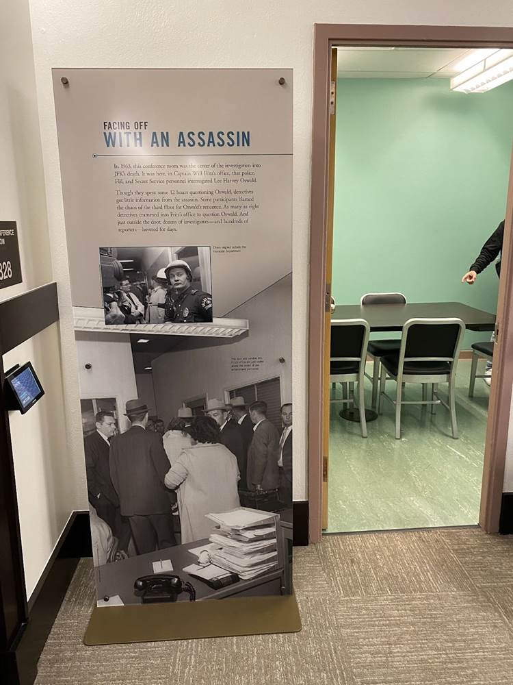 We left that famous site and headed over to another one– the former Dallas Police Department building, which now serves as a law school. This part of the tour felt especially unique, as the building is not open to the public. Despite that, there is a section of the lower level that has been turned into a museum of sorts, which follows Lee Harvey Oswald’s final steps as he was brought into the station, interrogated, and kept in a cell. This is, of course, the site of the above-mentioned killing of Oswald by nightclub owner Jack Ruby, and I was astounded to learn that Ruby was put into the same cell that Oswald had just vacated. While I had made a pilgrimage to Dealey Plaza once before (a couple decades ago), I’ve always wanted to see this location as well, so this part of the trip was extremely memorable to me.