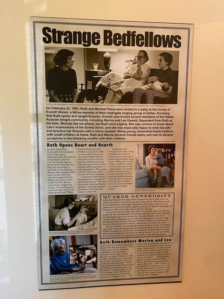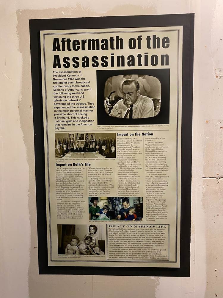 Our tour group followed that up with a visit to the place where Lee Harvey Oswald spent his final night as a free man– the Ruth Paine house in Irving, Texas. This is also where Oswald stored the rifle that was used in the assassination in the garage. It was quite an interesting contrast to see the places where JFK and his infamous assassin slept that night, and it was nice to see that the city of Irving had purchased the building and restored it to its 1960s decor. There were also holographic reenactments in each room telling visitors about Ruth Paine and the Oswald family’s history together.