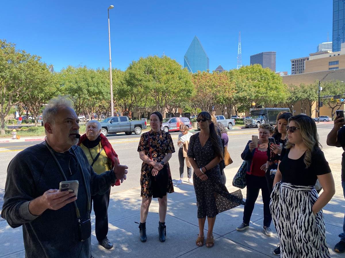 Next we walked around the corner, led by an excellent local tour guide, to Dealey Plaza, site of the horrific events of that early afternoon. The statue in the plaza predates the Kennedy assassination and in fact depicts George Dealey, a Texas businessman and publisher of The Dallas Morning News. Our guide walked us up to the former Texas School Book Depository, which now houses the 6th Floor Museum and is where Lee Harvey Oswald was perched during the assassination.