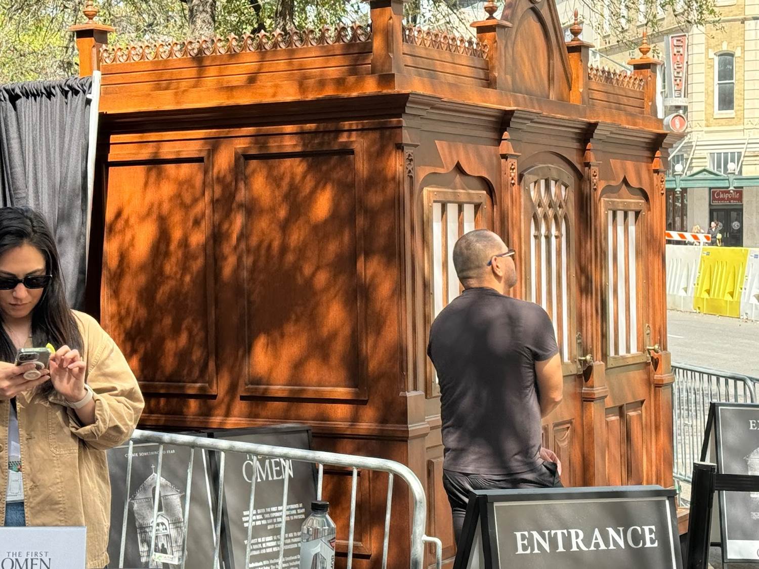 Attendees of the SXSW Conference & Festival in Austin, TX have a chance to give their confession with a special activation promoting 20th Century Studios’ The First Omen. The experience is actually open to anyone, and can be found on the street just outside SXSW. A nun and a priest were walking around near the experience, almost like we had really stepped into the world of The Omen.