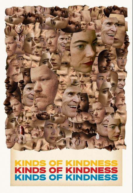 - Kinds of Kindness is a triptych fable following a man without choice who tries to take control of his own life, a policeman who is alarmed that his wife who was missing-at-sea has returned and seems a different person, and a woman determined to find a specific someone with a special ability who is destined to become a prodigious spiritual leader.