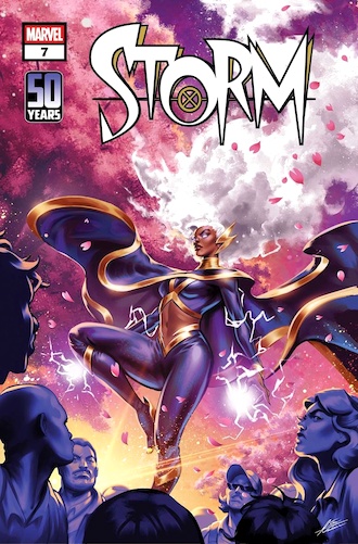 - Murewa Ayodele: “Creative giants, Len Wein and Dave Cockrum, changed the Marvel and mutant landscape with Giant-Size X-Men #1. This year, we’ll do the same with Storm #7. Bold words, I know. But that’s because I’ve read the illustrated issue… For the past five decades of publication, Storm has been an X-Man, Wakandan, Fantastic Four member, Avenger, and so much more. As she steps into this new phase of her life, her role morphs into becoming one with the Marvel Universe as she faces soul-crushing, cosmic labors to protect all we hold dear. But first, a brutal brawl with thunder deities from powerful pantheons."