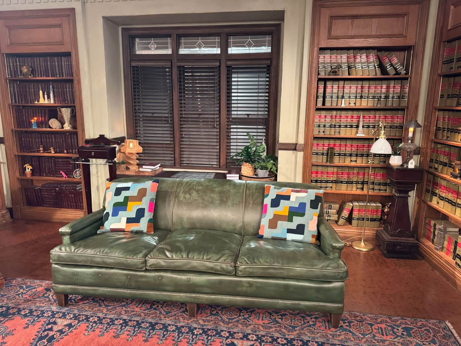 “They're exact re-creations from the original plans," executive producer and star Melissa Rauch shared about the set. “The walls have been updated a little bit because a government building wouldn't be that much updated over the course of 30 years. The paint colors change, but it's absolutely to scale from the original. Other than the bench because they made it just a little bit taller for me since I'm a different height than Harry. So that’s a little different. But we have the original chairs in the cafeteria from the original cafeteria set, which is very exciting. And because that was one of the tallest casts in television, my legs tend to dangle on these seats very much."