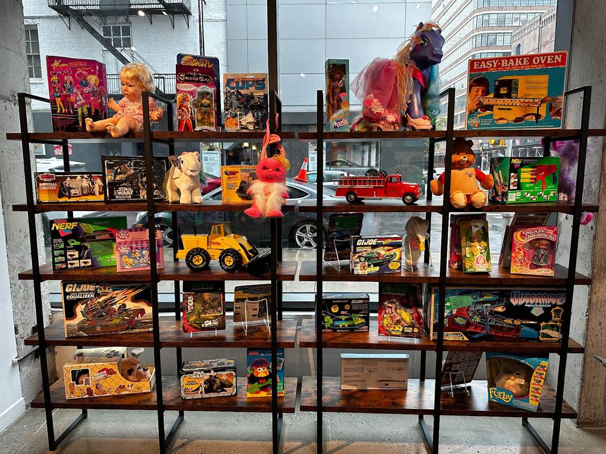 Mr. Potato Head is among Hasbro’s longest-running homegrown brands, although Tonka Trucks predates the plug-in tater (Hasbro acquired the metal construction vehicle line in 1991). Star Wars fans will be familiar with Kenner and one of their biggest products was the Easy-Bake Oven, which debuted in 1963 (Hasbro acquired Kenner in 1993). As a child of the 80s, my attention was focused on toys that also had an animated series, like Transformers, My Little Pony, G.I. Joe, Jem and the Holograms, and Pound Puppies. What’s fun about this wall is that many of these brands are still in production, with brand-new toys from these lines showcased this year.