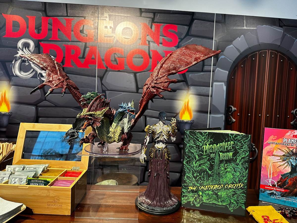On display in the Dungeons & Dragons section was the alternate cover art version of the recently released adventure book, Phandelver and Below: The Shattered Obelisk (Ages 12 and up, MSRP: $59.95), available at specialty retailers. The hardcover adventure book includes Lost Mine of Phandelver, two dozen new creatures, a magic appendix and a double-sided poster map. Releasing on October 17th is Planescape: Adventures in the Multiverse (Ages 12 and up, MSRP: $84.99). “An adventure setting spanning the infinite realities of the world’s greatest roleplaying game. Planescape: Adventures in the Multiverse contains everything a Dungeon Master needs to run adventures and campaigns set in Sigil and the Outlands, as well as new options for players who want to create characters prepared to explore the planes. The product is packaged in a slipcase, and includes Sigil and the Outlands (96-page hardcover setting book), Turn of Fortune’s Wheel (96-page hardcover adventure book), Morte’s Planar Parade (64-page hardcover bestiary book), a double-sided poster map and a sturdy four-panel DM screen.