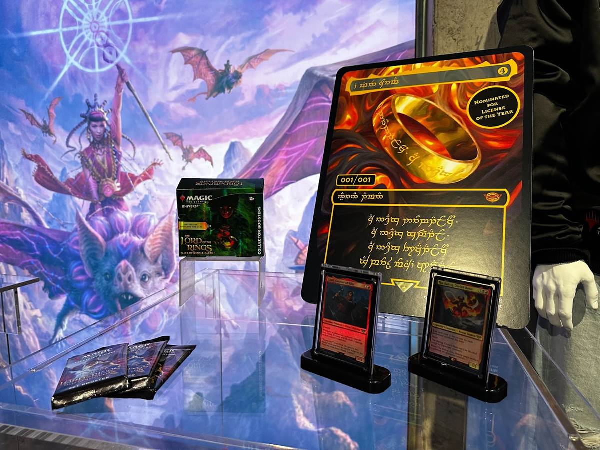 No, there won’t be another One Ring card in the November 10th holiday release of The Lord of the Rings: Tales of Middle-Earth (famously owned by Post Malone). That larger-than-life card was just on display for the fun of it. Jumpstart Vol. 2 Boosters contain 20 Magic cards per pack (2 Rare cards and 2 Land foil cards). Scene Boxes come with 3 Set Booster packs (12 cards each, 1-4 of which will be rare) and 6 exclusive borderless cards with art that creates the scene on that box, along with a display stand (they can also be played if desired).