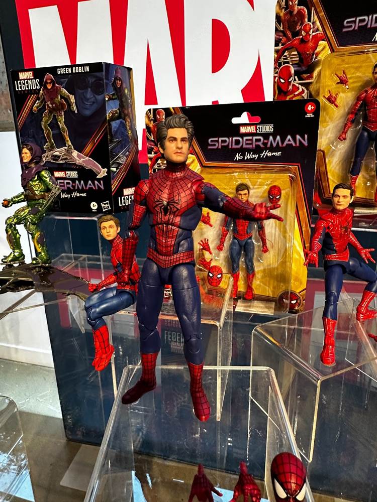 Moving up to the collector’s market, Hasbro recently announced a new wave of Marvel Legends figures from Spider-Man: No Way Home. All three Spideys were on display, as well as MJ and Green Goblin. Pre-orders for all three Spider-Man figures sold out within an hour of being on Hasbro Pulse, but they are still available from Entertainment Earth, as a complete wave or individually (MSRP: $24.99)