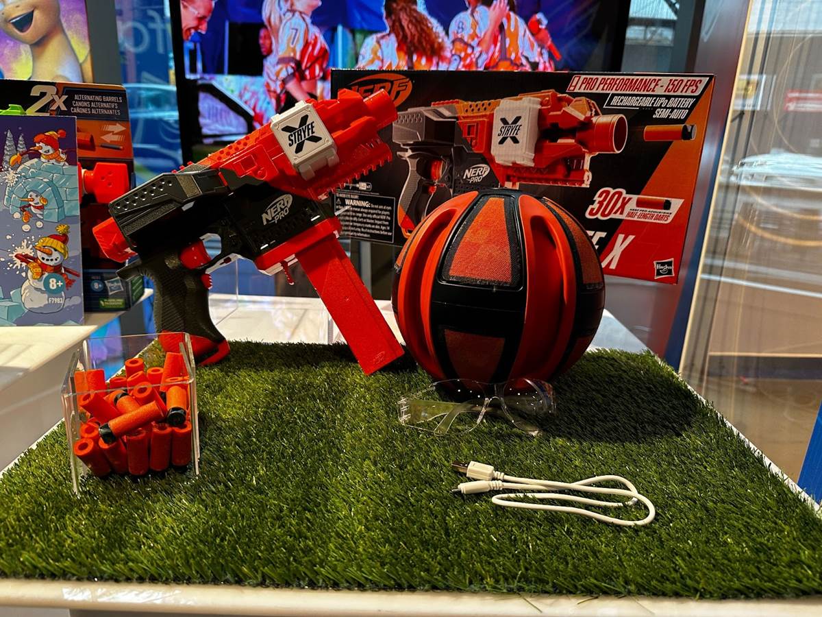 NERF Ball is now an official sport (learn more at Hasbro.com). On display at Toy Fair were new battery-powered NERF guns that pack a real punch. The more affordable option is the NERF Elite 2.0 Double Punch (Ages 8 and up, MSRP: $34.99), which has two rapid alternating barrels and comes with 50 NERF Elite 2.0 foam darts in two colors. Coming October 15th for advanced NERF athletes is the NERF Pro Stryfe X (Ages 14 and up, MSRP $149.99), which fires half-dart blasters (30 included) and also comes with ANSI Z87.1+ and EN 166 compliant PPE eyewear for protection during battles. The blaster has a semi-auto firing mechanism, reaching speeds of up to 150 feet per second velocity, powered by an 11.1V 1000mAh LiPo rechargeable battery (USB-A to USB-C charging cable included).