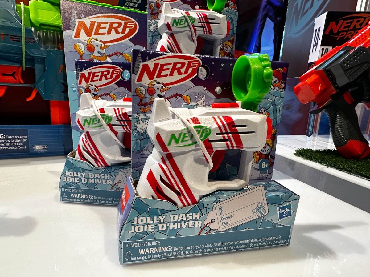 The ultimate stocking stuffer this Christmas is the NERF Elite 2.0 Jolly Dash (ages 8 and up, MSRP: $5.59). This miniature classic NERF has a candy cane overlay and comes with 2 colorful foam darts.