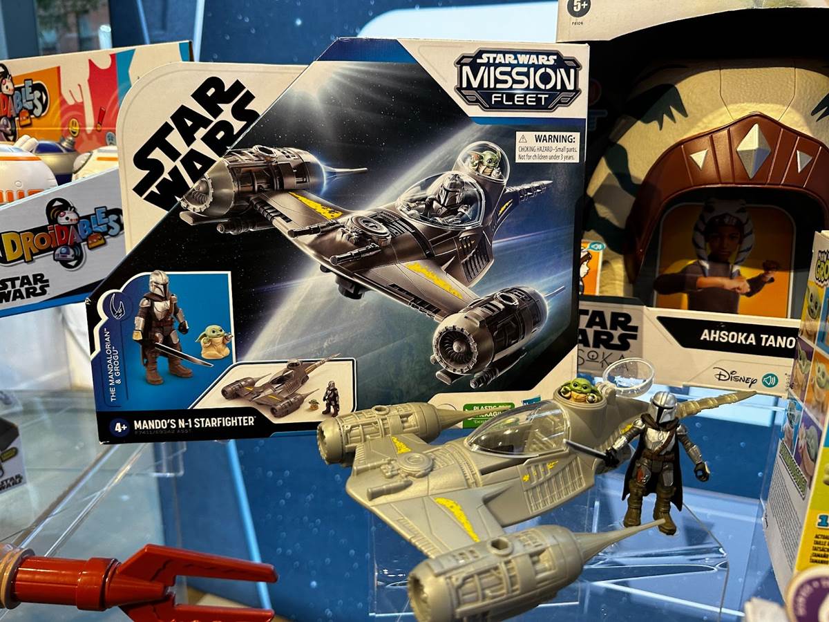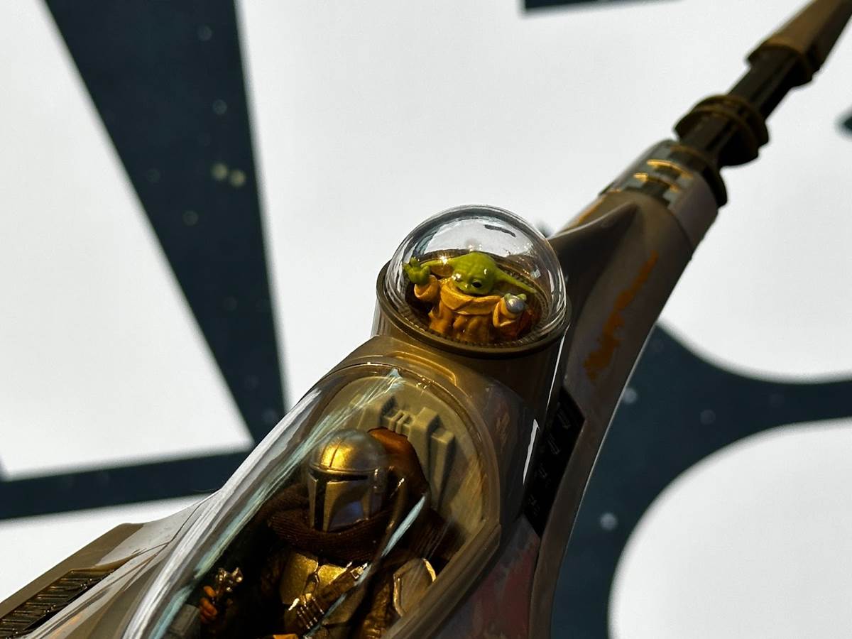 New to the Star Wars Mission Fleet line is Mando’s N-1 Starfighter (MSRP: $22.99). This set comes with a 2.5-inch-scale Mandalorian figure with fully poseable arms, legs, and head, a Grogu figure, and a Darksaber accessory in addition to The Mandalorian’s N-1 Starfighter ship. The cockpit opens up for the Mandalorian toy, and there’s even a hatch for Grogu to sit.