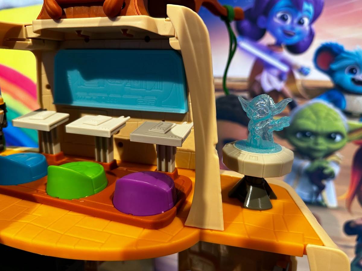 The temple offers lots of kinetic fun, like a swinging vine, a vine slide, Force push panels, and “floating" rocks. Recreating the environment from the show, it also features a classroom area and sleeping quarters. Oh yeah, and it lights up and makes sounds.