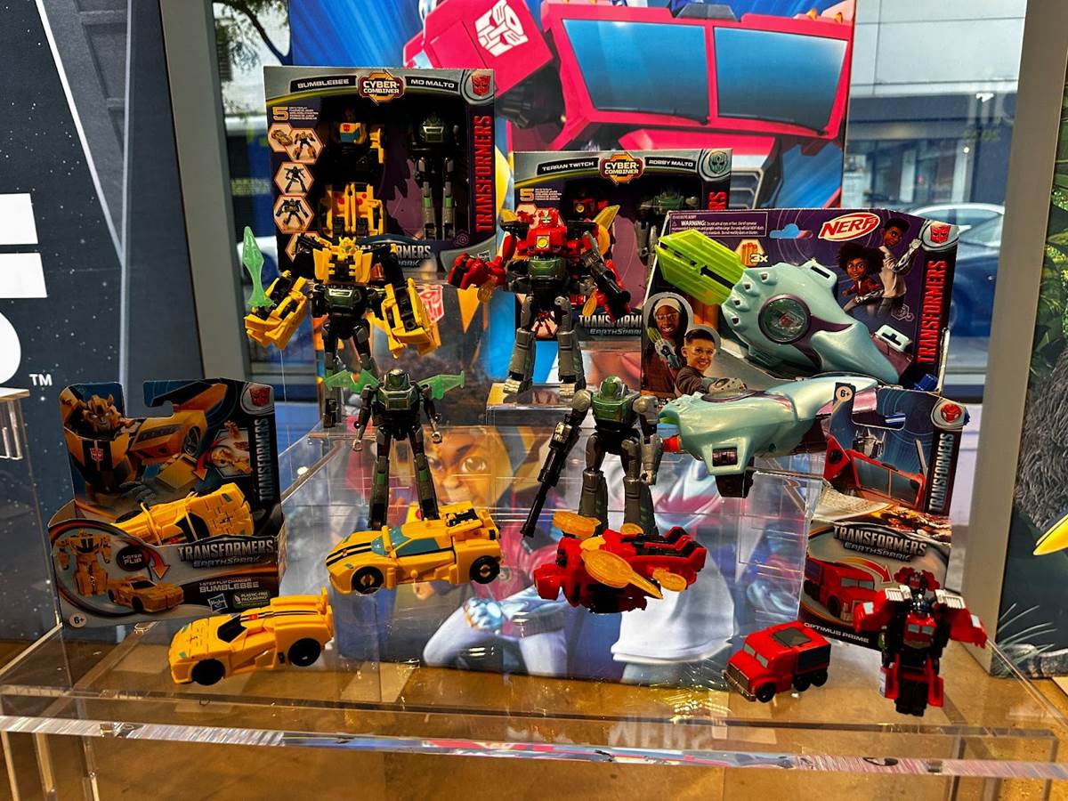 Coming in January is a collaboration between Transformers and NERF with the Transformers: Earthspark Cyber-Sleeve Battle Blaster (Ages 6 and up, MSRP $14.99). This blaster fires NERF darts, but can also be transformed into Mo Malto’s CyberSword from the animated series.