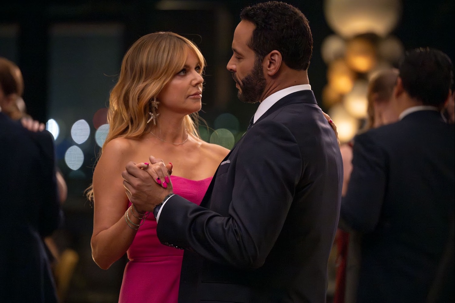 On the dance floor, Morgan and Karadec slow dance. They reflect on how far they’ve come as partners. Karadec assures her that they will solve the case of Roman together, but he insists that he should be the one to handle Gio from now on. Morgan resists, saying she knows what she’s doing. Karadec pleads with her: “Partner, trust me." Finally, she tells him about her 9 a.m. meeting with Gio. Just then, Tom arrives, and Morgan steps away from Karadec to greet him.