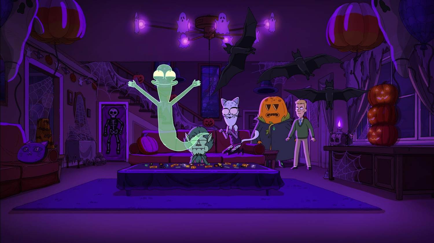 There’s a big showdown between the main characters and this spirit, and once he’s defeated (through Korvo falsely gushing about his love of Halloween), the climax of the special ends with Korvo foregoing his destiny to become the Great Pumpkin and bestowing that honor onto the witch, who helped them defeat their enemy. Halloween is saved, and the Solar Opposites are rather arbitrarily, but hilarious, allowed to make wishes for their efforts. So the Chang and the Alien become the valets and the family throws a big costume party in the country club, with everyone dancing to the song “Spooky Scary Skeletons." I had a great time with this Solar Opposites Halloween special, as I have with all the other holiday installments of this animated series. Its rapid-fire jokes and barrage of irreverent pop-culture references (consistent with regular seasons of the show) kept me in stitches throughout– not to mention the fact that the voice cast (including regulars and guest stars) of this series is still working at the top of their game. I really get a kick out of the aliens’ love-hate relationship with Earth culture, and as always I’m looking forward to more adventures with Korvo, Terry, and the replicants.