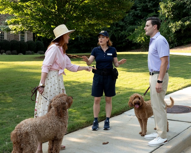 Angie Polaski (Erika Christensen) has taken a job as a security guard of a gated community called Waldorf Estates, where she settles neighbor disputes about un-picked-up dog poop. Her sponsor, Franklin (Kevin Daniels), pays her a visit to tell her that Will Trent is coming back for a case. She tells him she’s good, and unlikely to run in. He reminds her to work on her statement for the hearing, saying that can get her out of this situation.