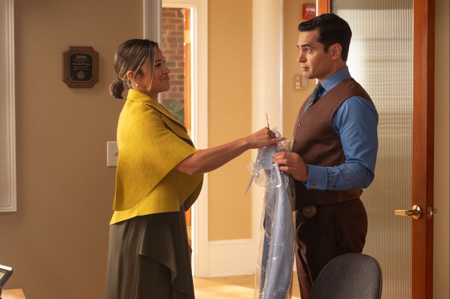 As Will updates the case board, Assistant District Attorney Marian Alba (Gina Rodriguez) visits his office, asking for help with her CI. He offers to connect her with Faith, but as they talk, he notices a coffee stain on her blouse. Ever the gentleman, he hands her his freshly dry-cleaned shirt off the back of his door. The flirtatious tension between the two of them has grown. Angie happens upon the pair as Marian finishes changing, recognizing the newcomer in her ex’s shirt. Angie remains professional, telling Will that Lloyd is out of surgery.