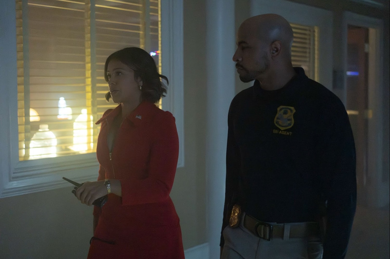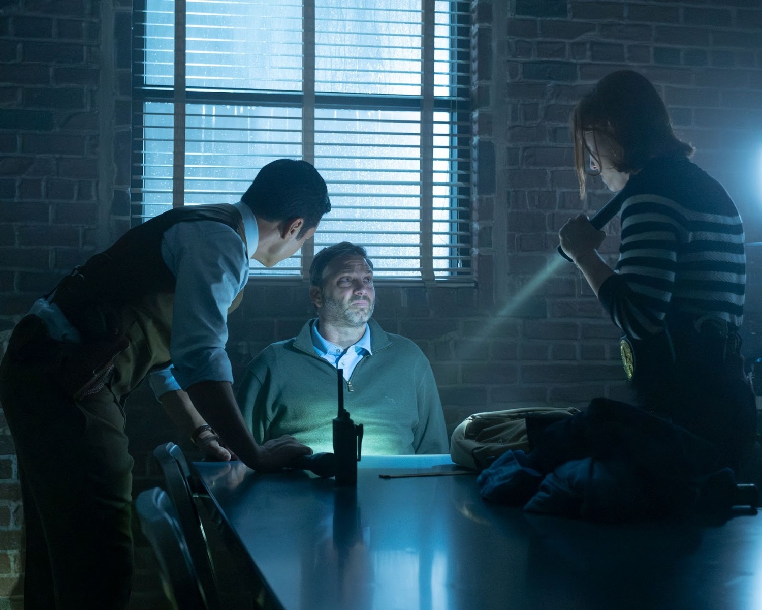 Angie heads to the GBI conference room, finding Will Trent (Ramón Rodríguez) in conversation with Marion Alba (Gina Rodriguez) and Freddy Markovic (Federico Rodriguez). Angie tells them about John’s mother’s notebook mentioning another person present at the time John allegedly raped and murdered his girlfriend. Freddy says the information came in too late on the original case to be used as evidence. Angie notices that Freddy’s eyes twitch sometimes. Marion also points out that this detail wouldn’t absolve John of being a suspect in their current case. Angie sees Will and Marion making flirtatious eyes at each other as he notices that Marion is wearing an American flag pin.