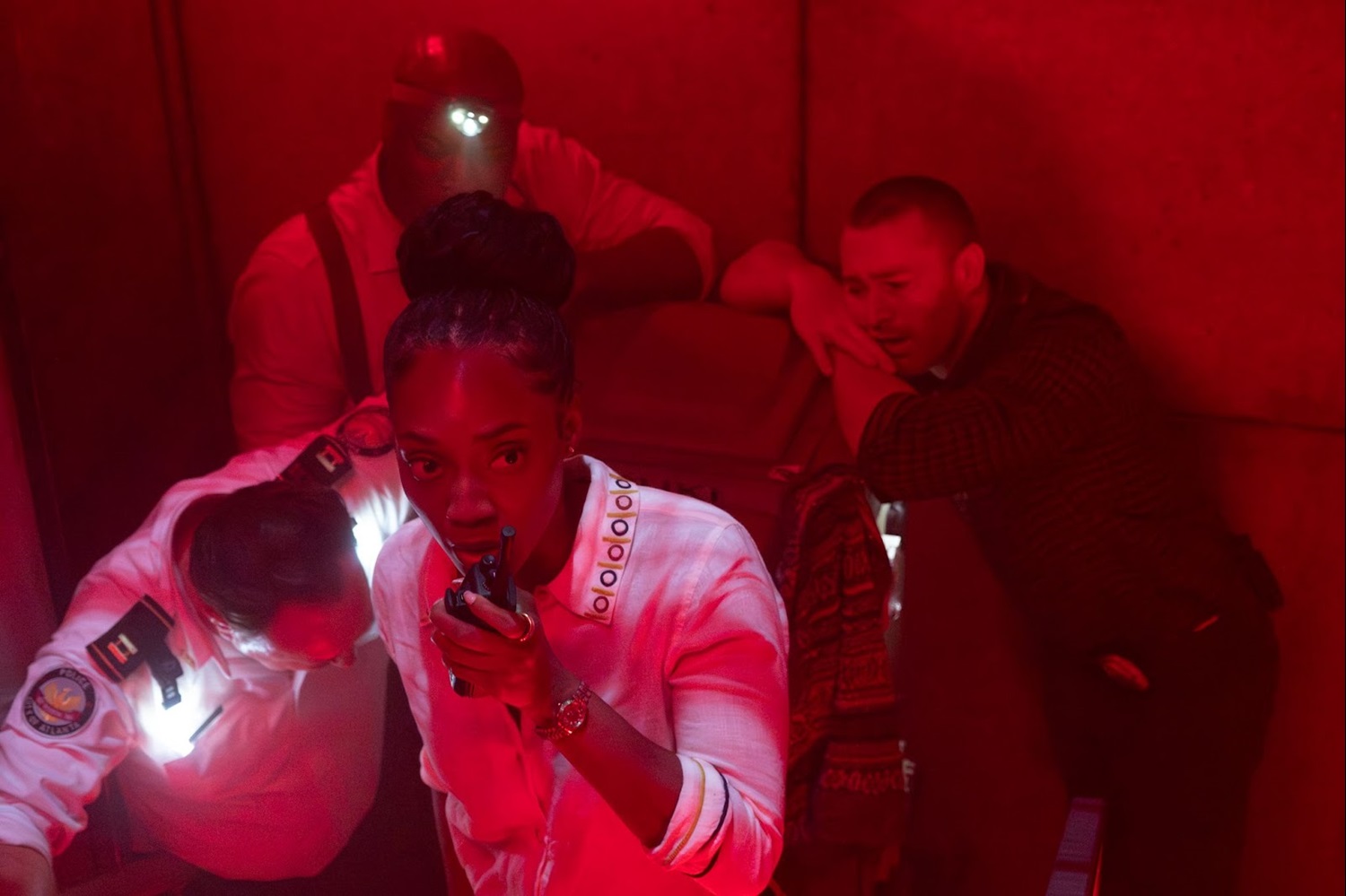 Angie and Will are stuck in the elevator, and neither of their phones have service. It gives Angie time to ask Will about his feelings for Marion, and he gets defensive, reminding Angie that she released him. Something wet drops on Angie’s face, and they soon realize it’s blood. Will helps lift Angie so she can raise the elevator’s ceiling tiles. They find the body of Mia Elkan (Teisha Speight), the witness they were waiting for. Mia’s body is still warm, and Will suspects that she was killed elsewhere and dumped down the elevator shaft. Mia’s digital watch beeps with a reminder to get her steps in. Angie knows that the only key to the elevator shaft is at the reception desk.