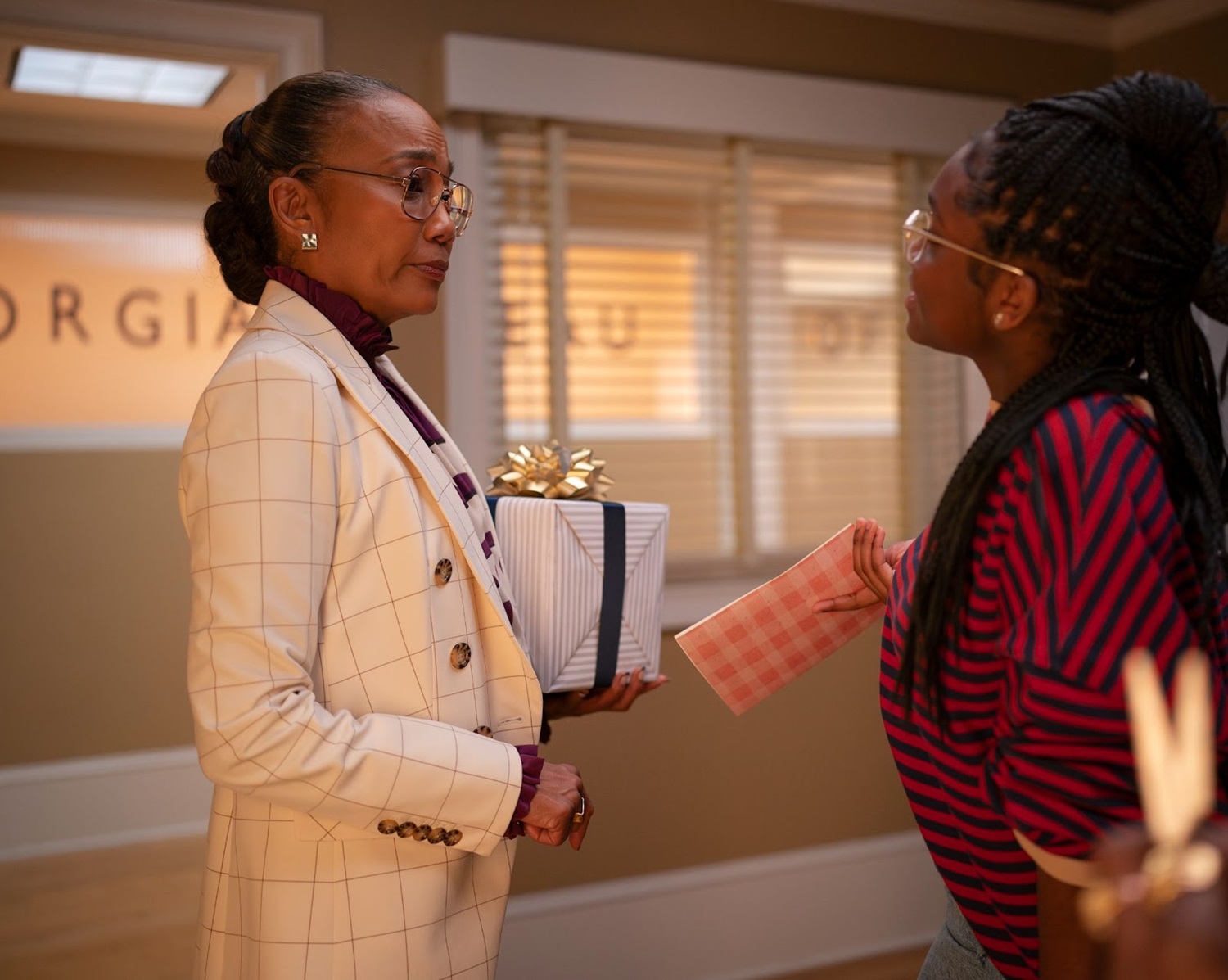Amid the storm's chaos, Amanda Wagner (Sonja Sohn) is planning a surprise party for her secretary, Caroline. She tasked Sunny (Kyrie McAlpin) with making a card, and Sunny’s father Rafael Wexford (Antwayn Hopper) helped, too.