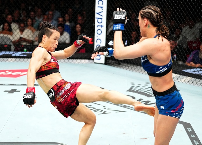 Wang Cong put on a striking clinic in a prelim matchup against Bruna Brasil. The two fought a very close first round, with Cong likely stealing it thanks to a late takedown after Brasil attempted a spinning attack. In the second though, Cong opened up with her hands and Brasil seemed frozen. Cong landed some big combinations including a jab and heavy calf kick in the closing seconds. The third round saw more of the same and, while Brasil threw some more wild spinning attacks in the closing seconds, it was an easy decision victory for Wang, who could have a nice future in the UFC.